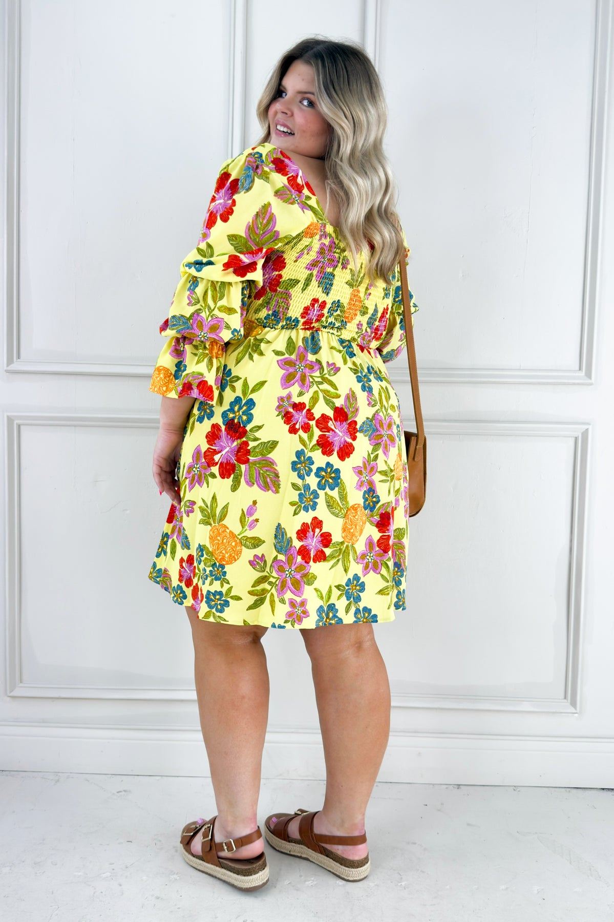 Bold Floral Embroidery Printed Mini Curvy Dress
