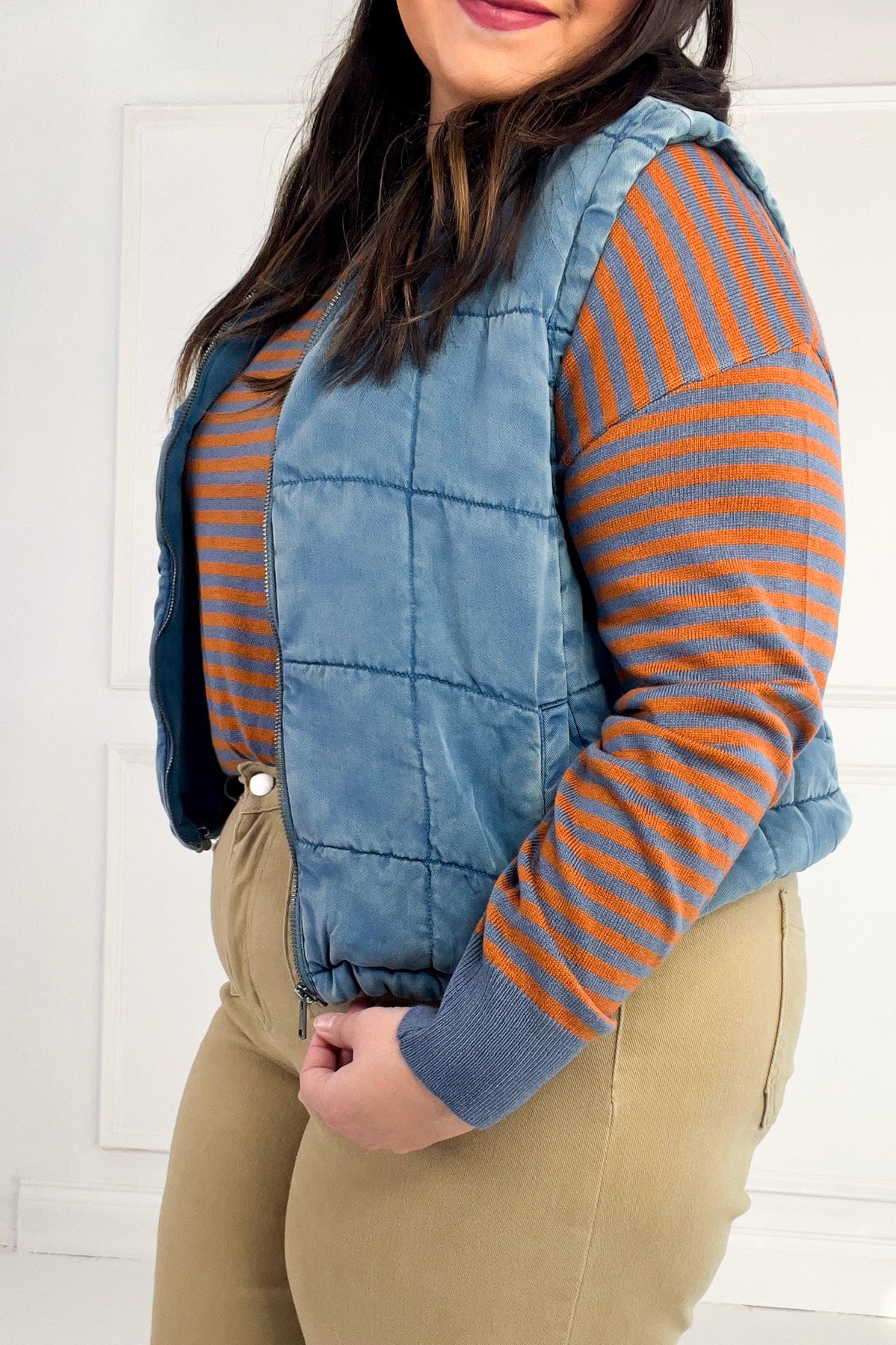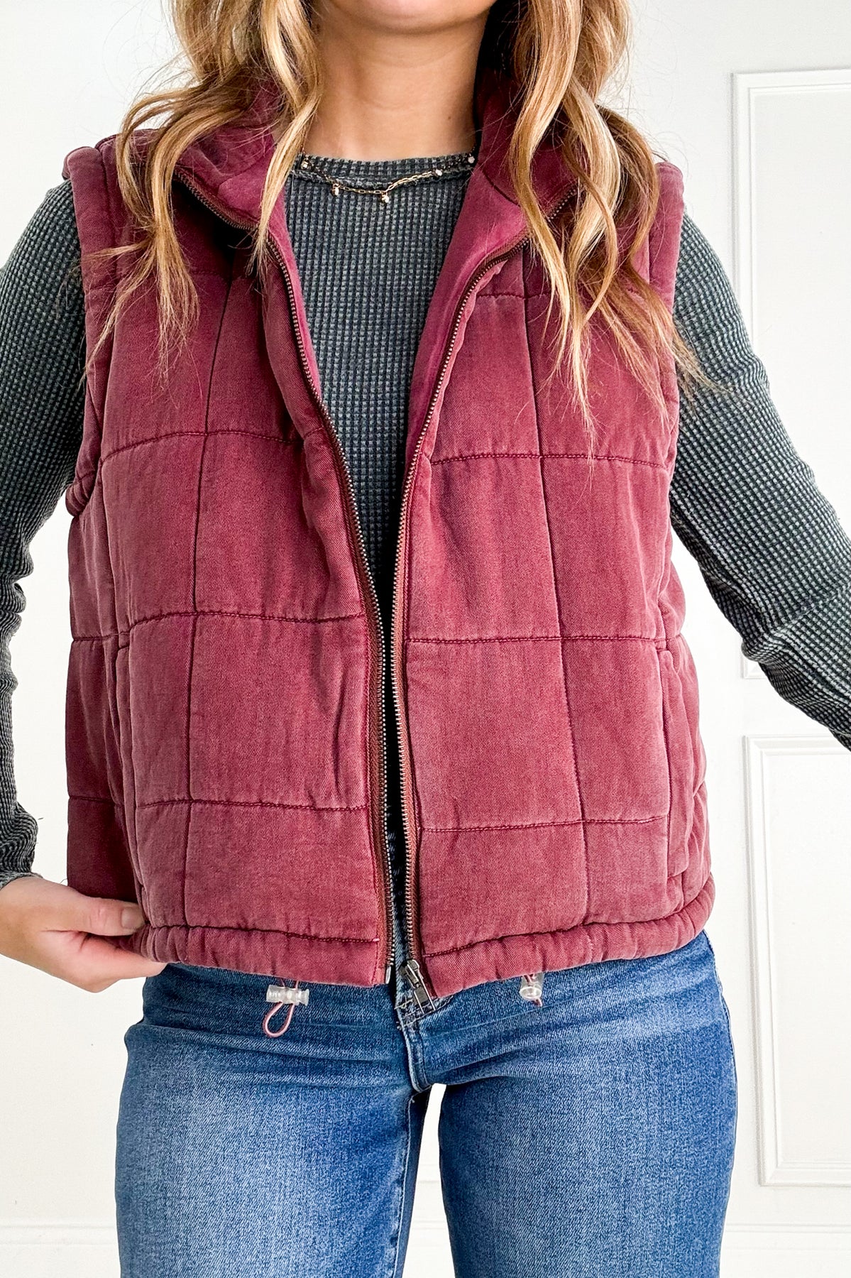 Stay effortlessly stylish and warm with this quilted puffer vest. Featuring a lightweight yet cozy design with a high collar and adjustable hem, it’s perfect for layering over long sleeves or sweaters when the temperature drops.