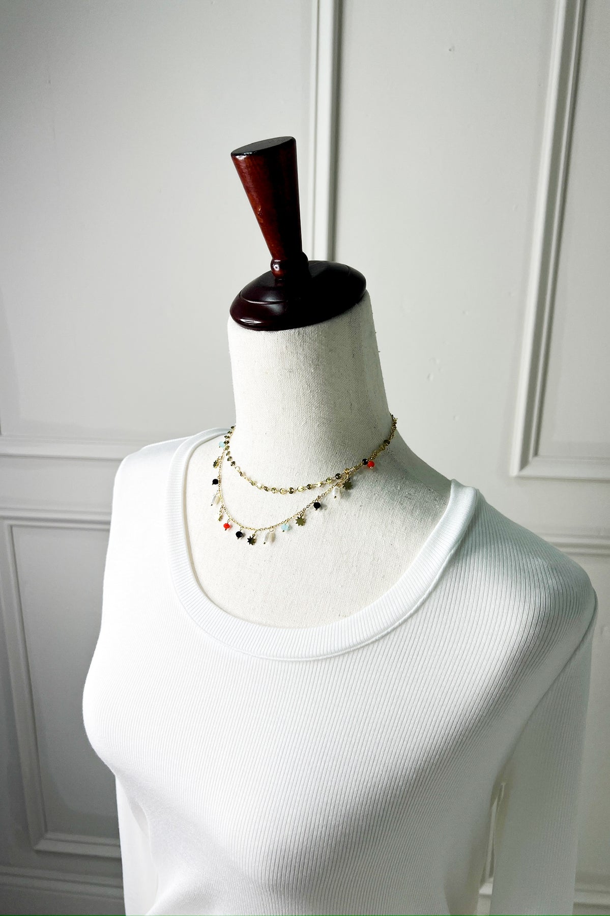 Celestial Charm Seedbead Layered 18K Gold Necklace