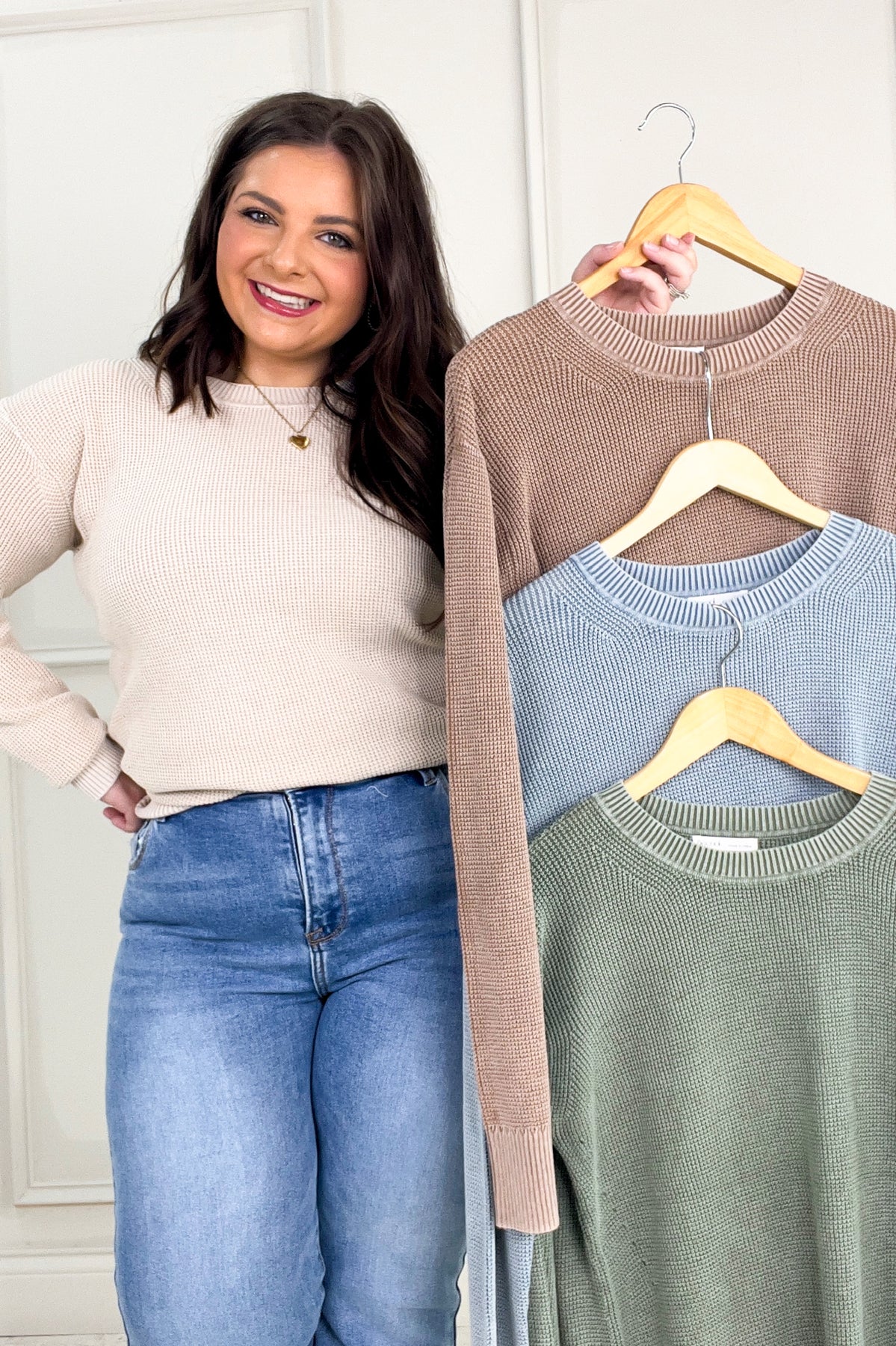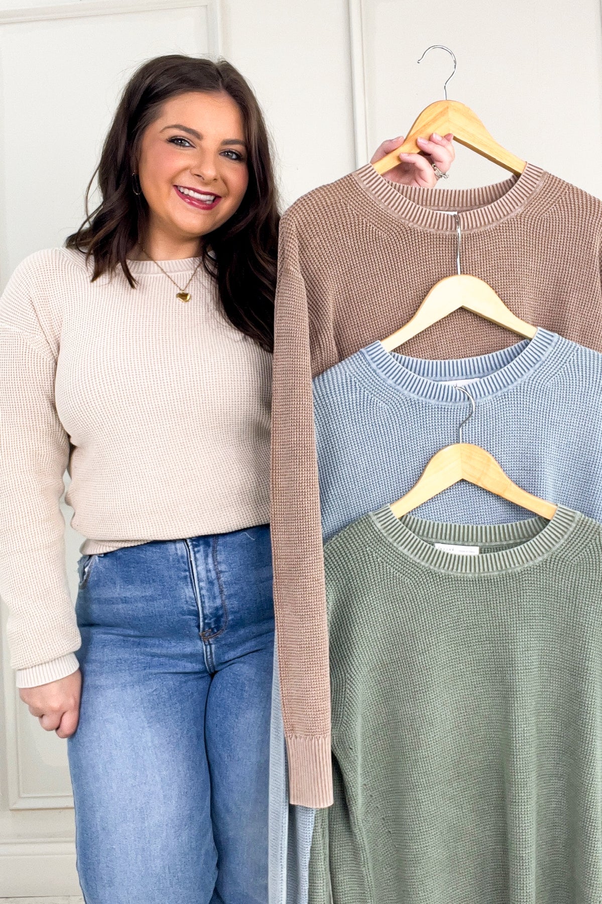 A warm and textured essential with its chunky waffle-knit pattern and relaxed silhouette. Finished with ribbed trim for a touch of structure, it’s a cozy layer you’ll reach for again and again.