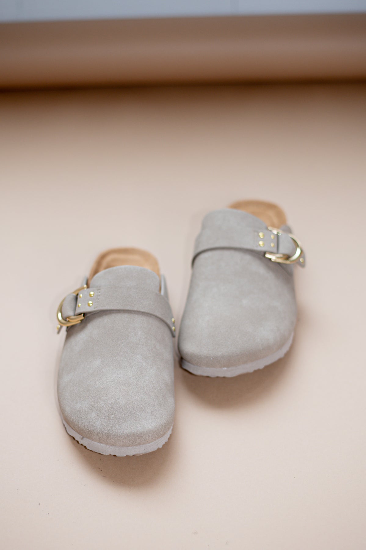 Add a vintage-inspired vibe to your step with these comfy cork sole clogs featuring chic gold buckles. Pair with a cute pair of socks for a fun Spring look!