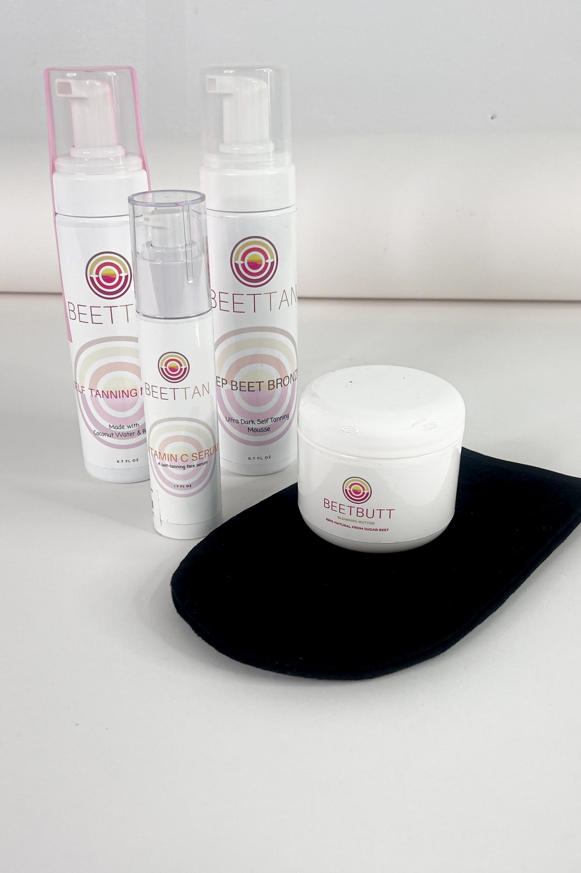 Apply our SELF TANNING MOUSSE to dry, freshly cleansed, lightly exfoliated skin with our Application Mitt using long, sweeping circular motions. Smooth on evenly and blend thoroughly. Use sparingly around knuckles, knees, ankles and elbows.