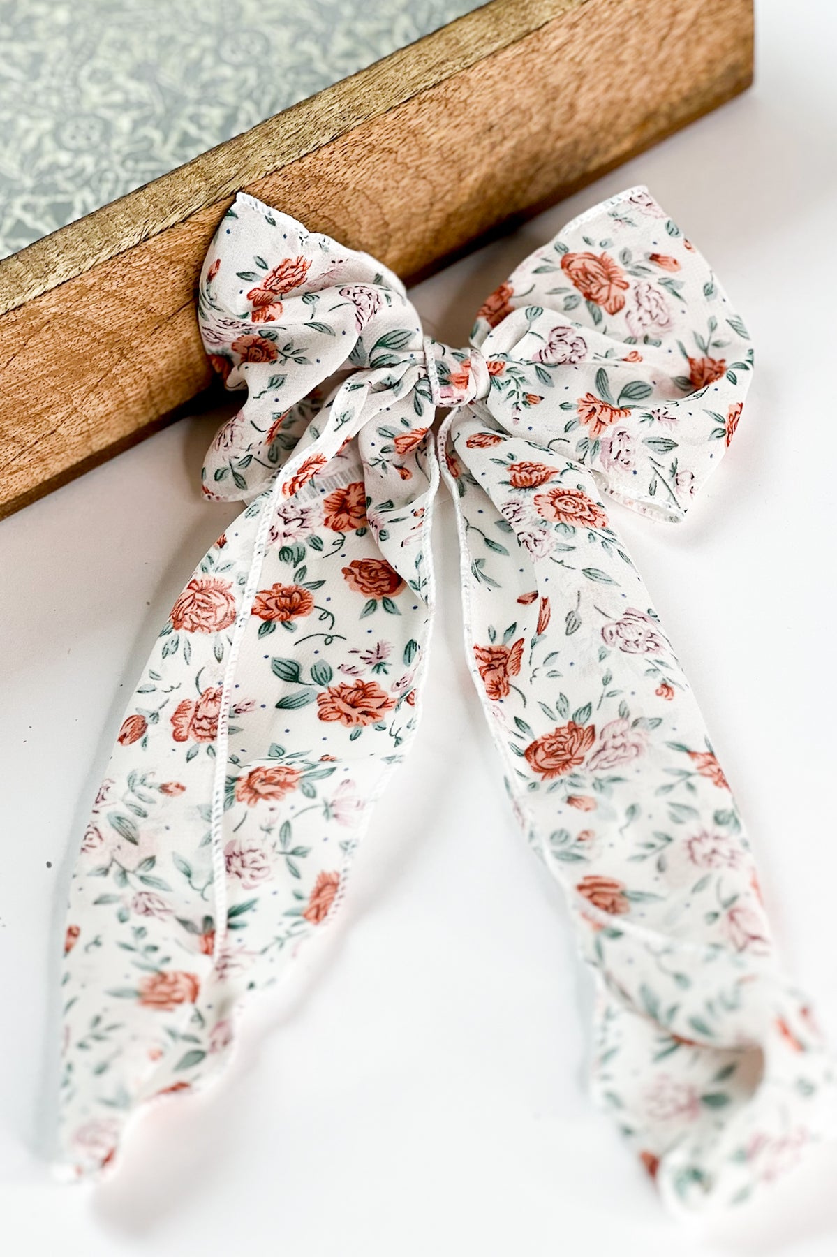 Feminine and flowy, this Floral Chiffon Hair Bow Scarf adds a romantic touch to any hairstyle. Designed with soft chiffon fabric and a vibrant floral print, it ties into an oversized bow with long trailing ends for a chic, effortless look. Perfect for ponytails, half-up styles, or as a statement hair accessory.