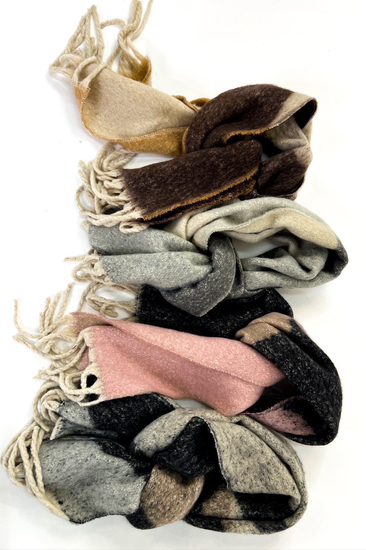 Geometric Colorblock Fringe Wool Shawl Scarves