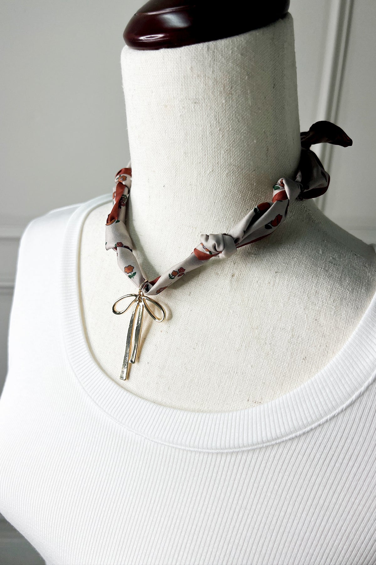 Sweet and feminine, this Scarf Chain Necklace with a delicate gold bow pendant adds a graceful accent to any look. The polished bow design is paired with a patterned scarf-style chain, creating a unique blend of soft charm and modern edge. Perfect for everyday wear or as a standout accessory for special occasions.