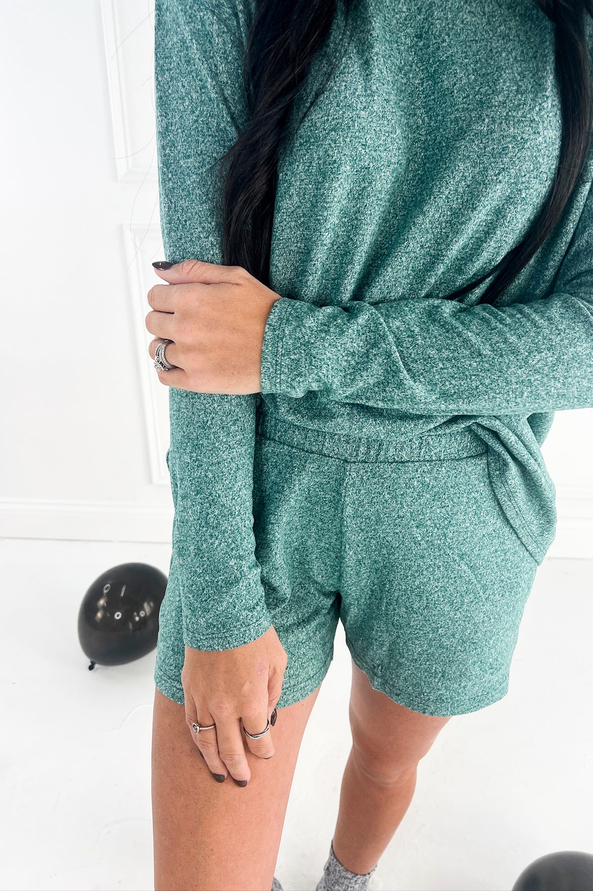 This dreamy two-piece set is made from a brushed, heathered fabric that feels buttery soft against the skin. The long-sleeve top gives that relaxed, cozy vibe while the matching shorts feature an easy elastic waistband for all-night comfort. Whether you're winding down, sipping cocoa, or having a lazy weekend morning, this set keeps you comfy and cute.