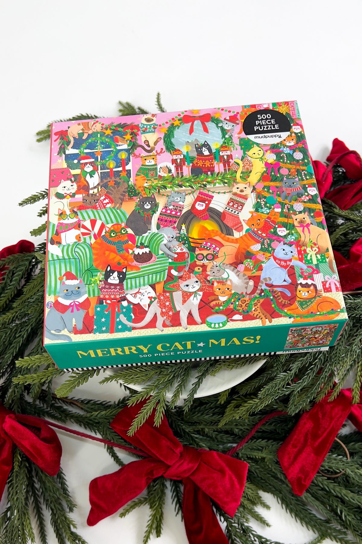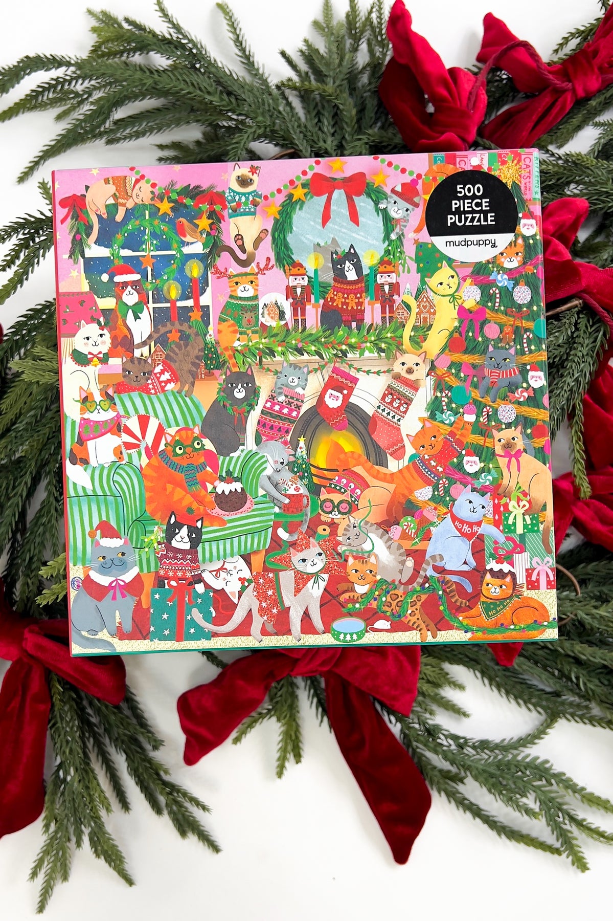 Paws everything and get ready for holiday fun with our Merry Catmas! puzzle! This 500-piece feline festivity features adorable cats decked out in their Christmas best. Perfect for family puzzle nights, it combines whiskers with holiday cheer for a purr-fectly entertaining way to celebrate the season. Warning: may cause spontaneous meowing and uncontrollable giggles while assembling!