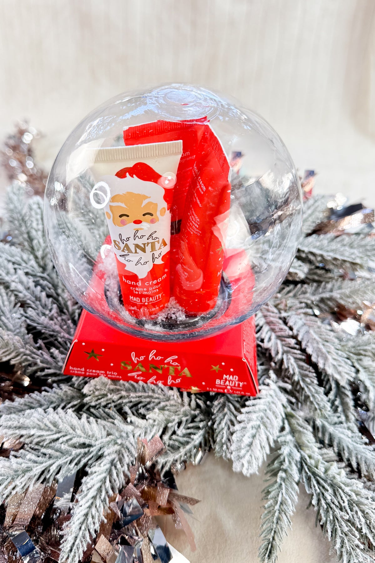 Spread a little holiday cheer (and hydration!) with the Santa Hand Cream Trio. Packaged in an adorable snow globe display, this festive set includes three travel-size hand creams featuring cheerful Santa designs. Each cream is enriched with nourishing ingredients to keep hands soft and smooth all winter long. Perfect for stocking stuffers, teacher gifts, or a merry little treat for yourself this season.