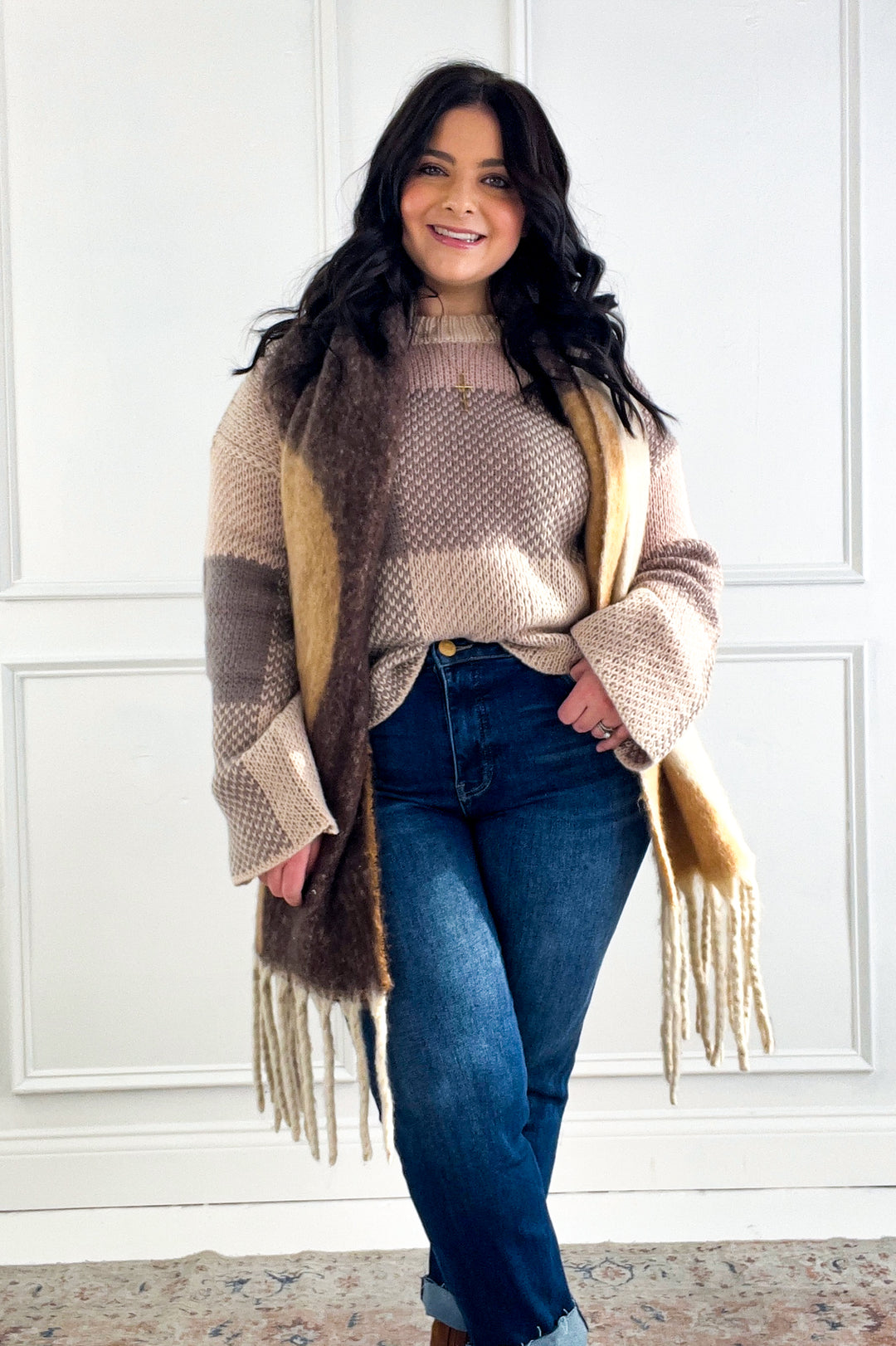 Mock Neck Oversized Grid Sweater