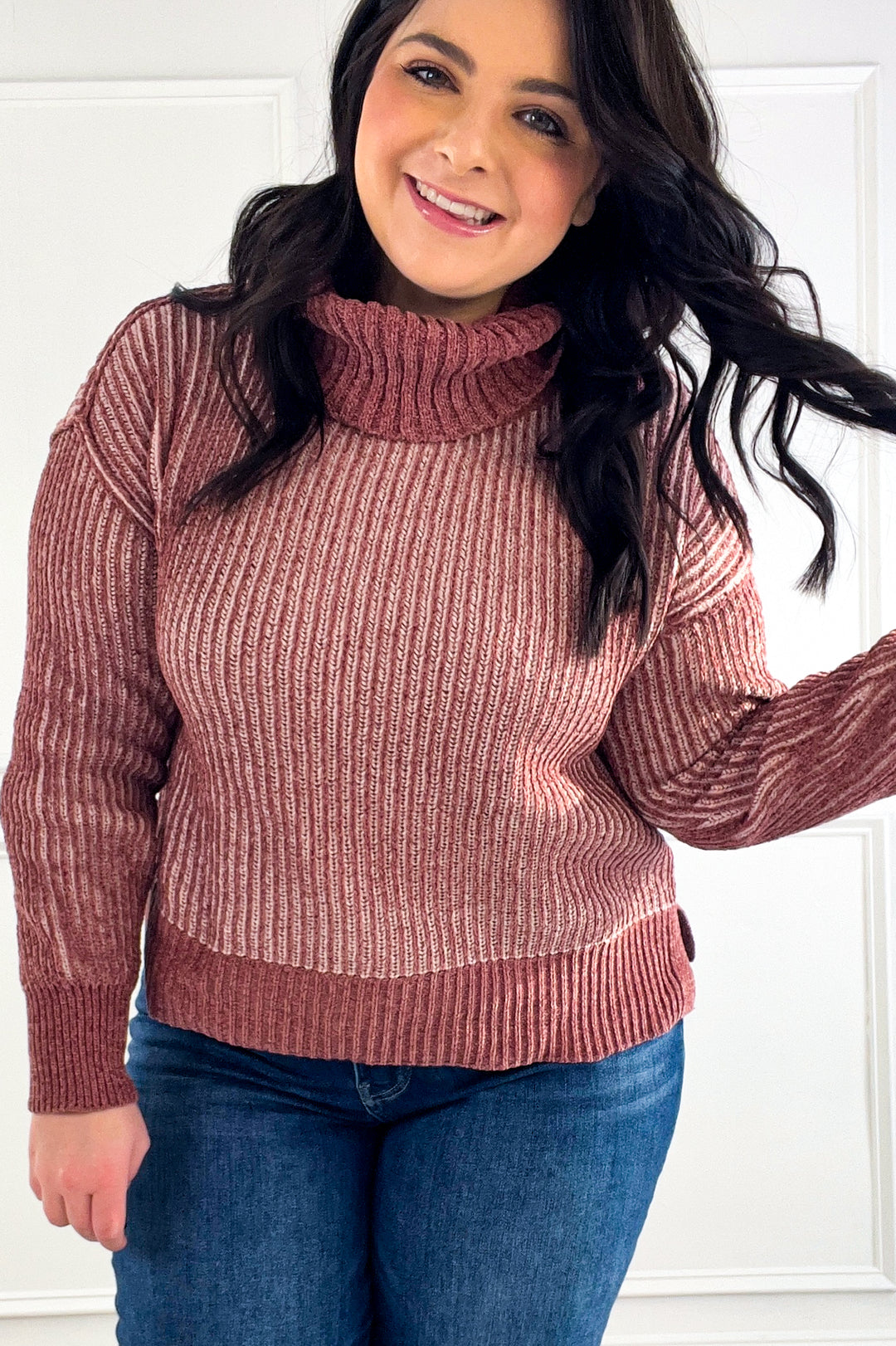 Two-tone Soft Chenille Turtle Neck Sweater