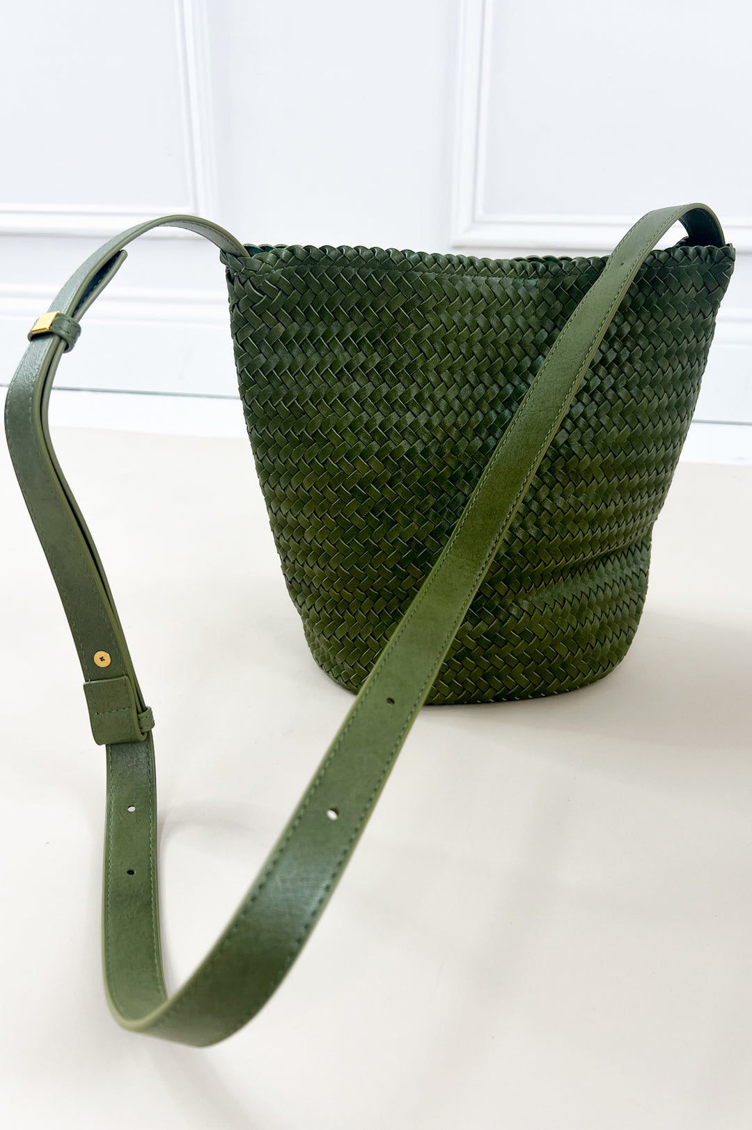 Hand Woven Faux Leather Crossbody Bucket Bag