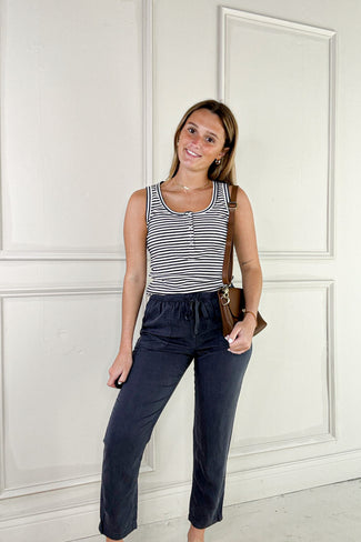 Soft, lightweight, and easy to wear, these Tencel ankle pants feature a comfy pull-on style with an elastic drawstring waist and functional patch pockets for laid-back, everyday wear.