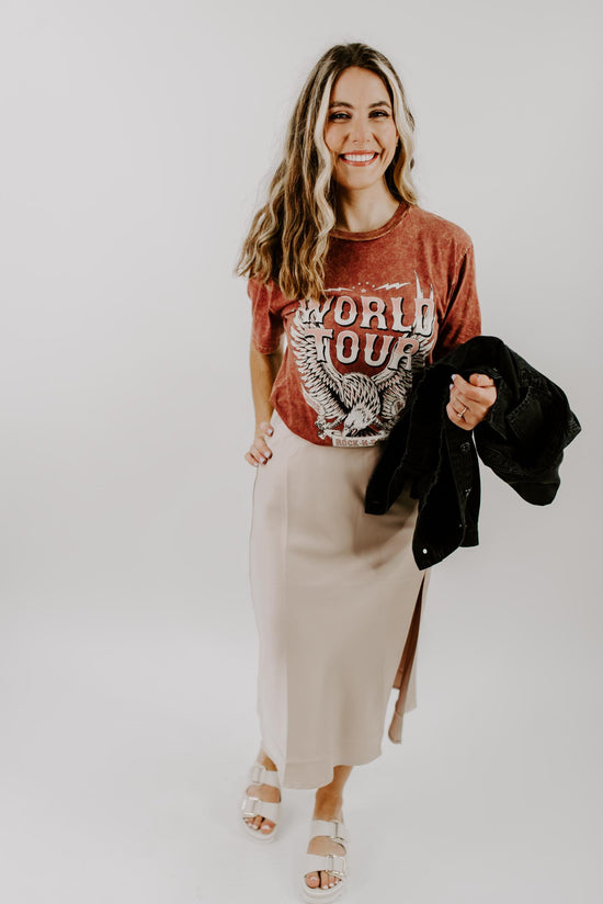 Graceful Side Slit & Bow Tiered Midi Skirt: