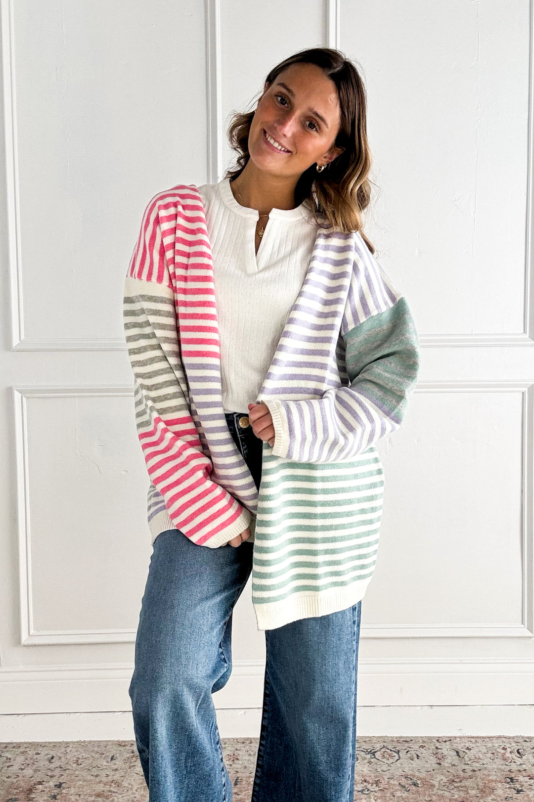 Multicolor Striped Sweater Cardigan