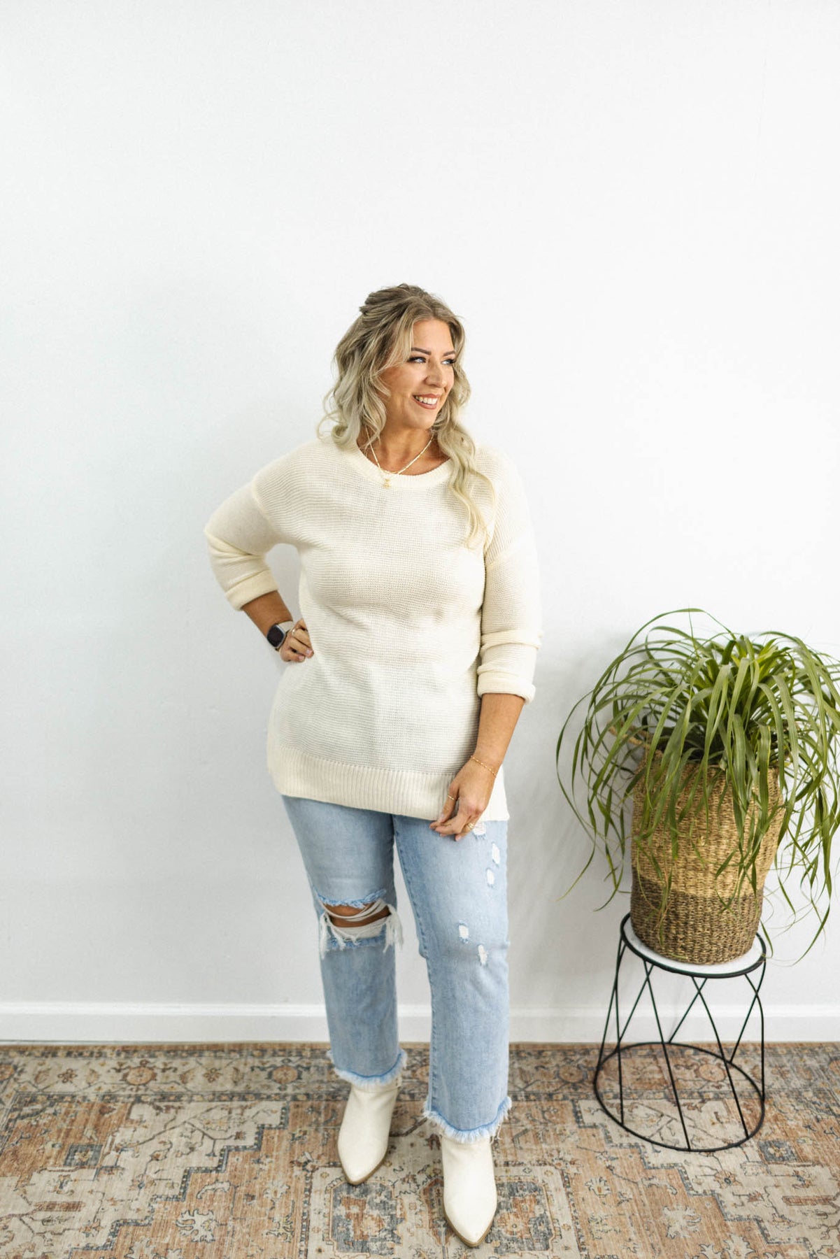This cozy sweater features a relaxed, oversized fit that's perfect for layering on chilly days! It also has drop shoulders, and ribbed cuffs and hem.