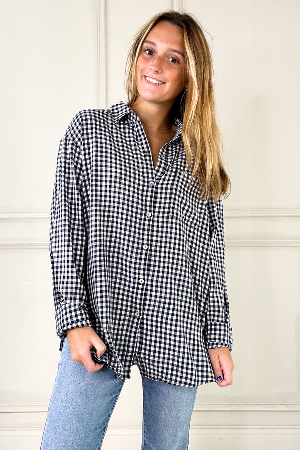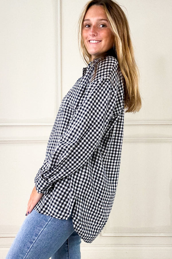 Navy Gingham Long Sleeve Button Up Shirt