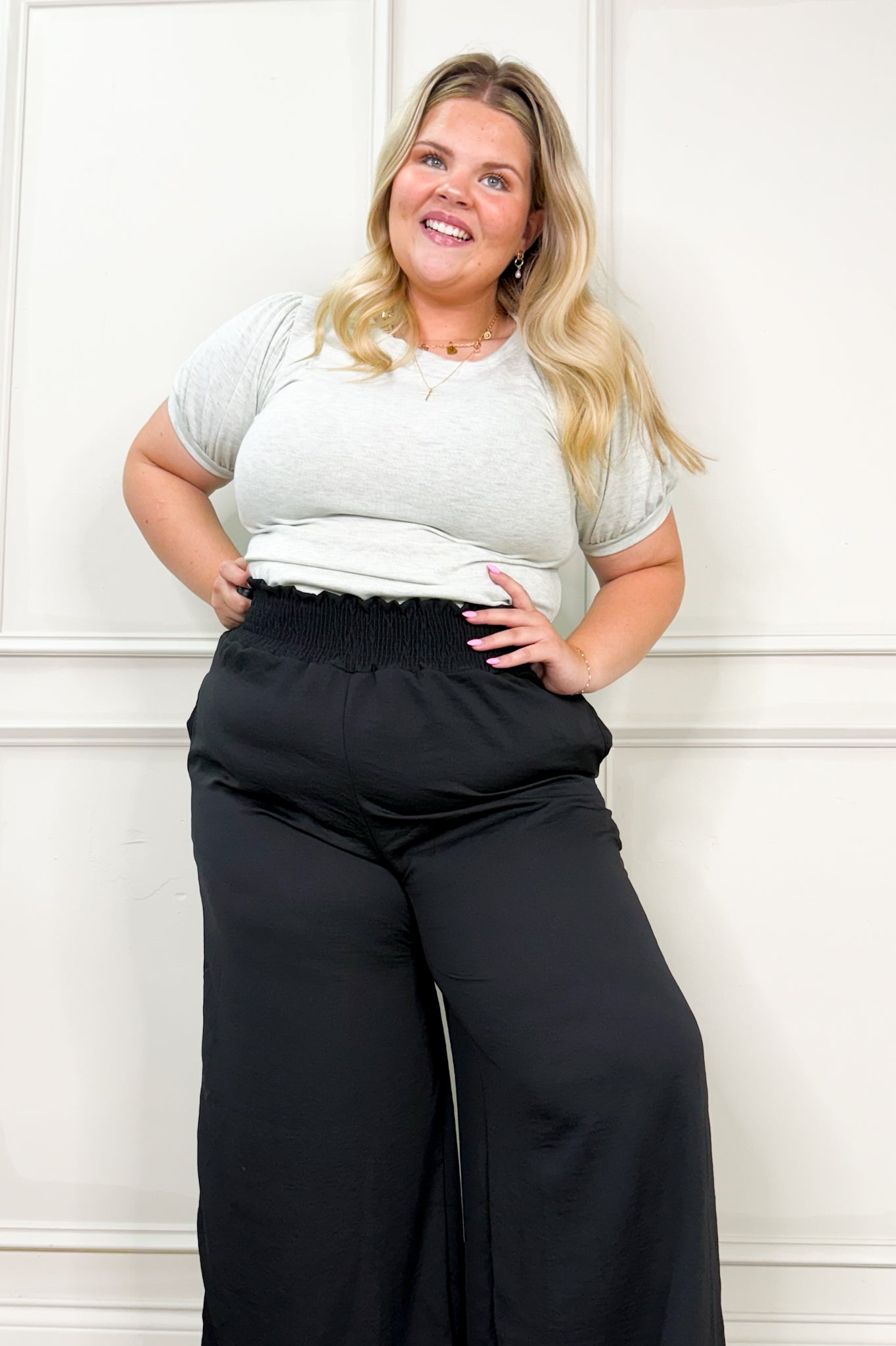 High Waist Solid Smocked Wide Leg Curvy Pants