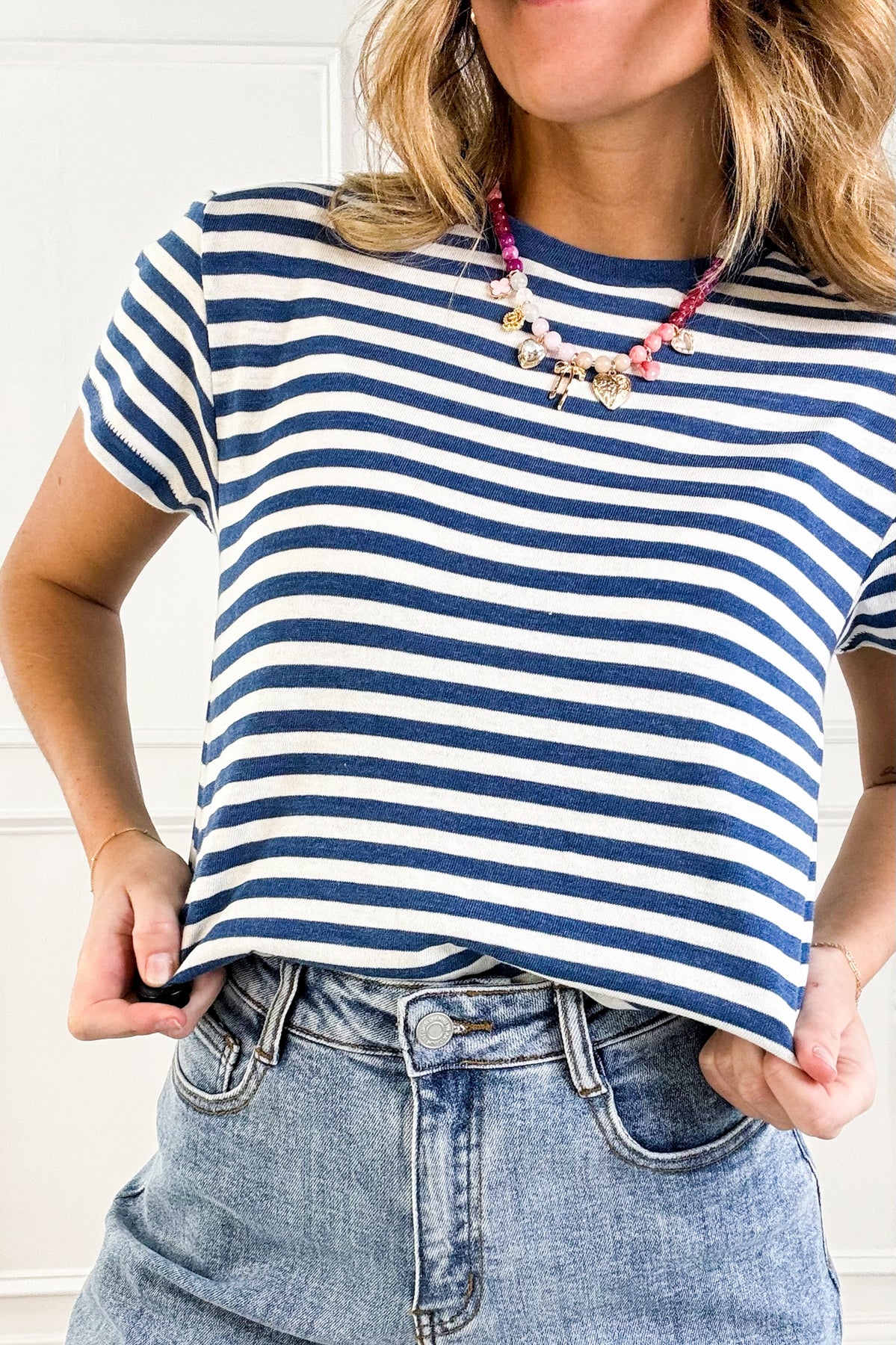 This lightweight striped tee has a slightly boxy fit and a soft, breathable feel that makes it perfect for everyday wear. The relaxed silhouette and timeless stripe pattern give it an easy, laid-back vibe that never feels overdone.