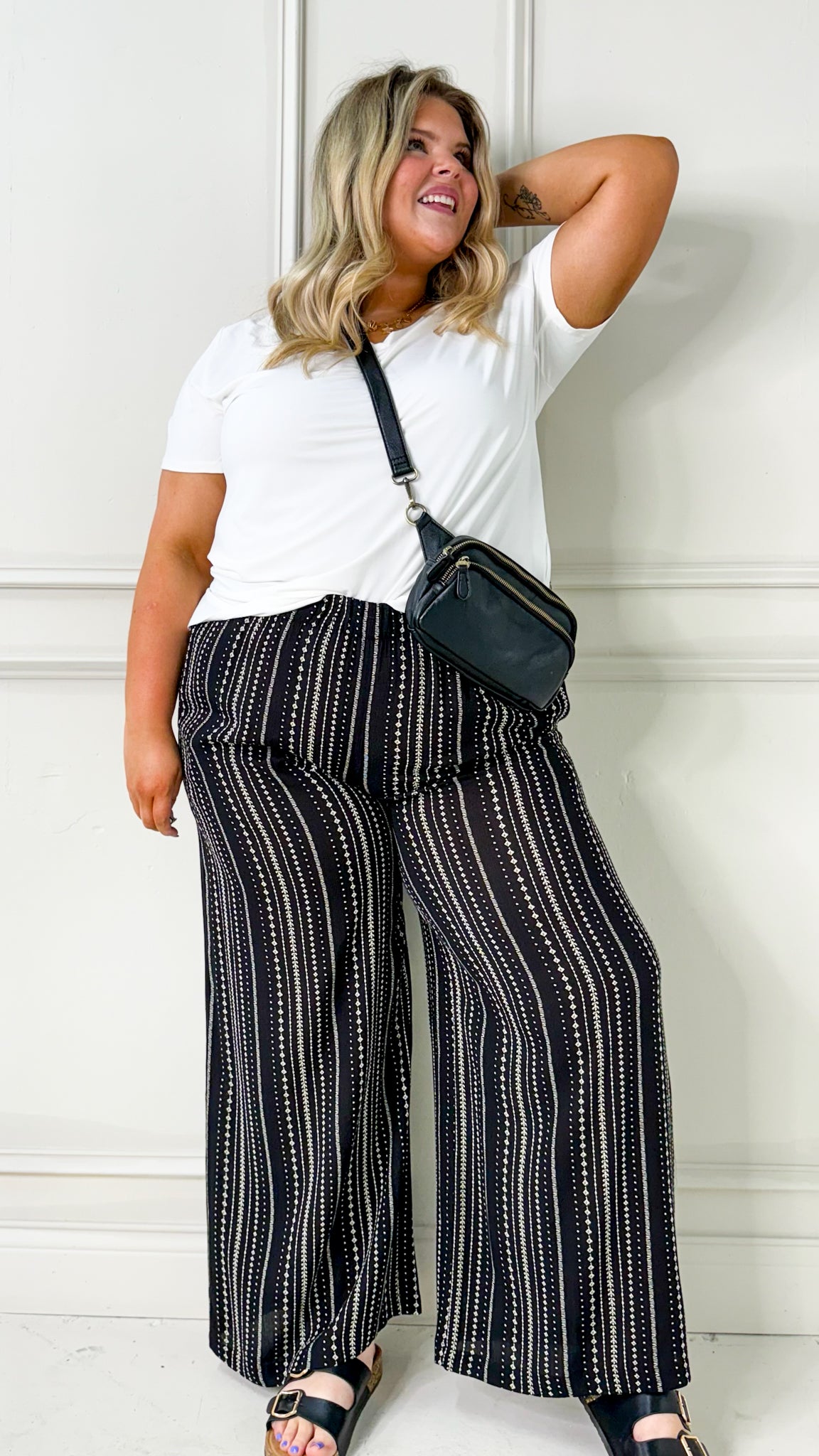 Soft, breathable, and full of movement—these wide-leg pants feature a unique vertical stripe print and an elastic waist for that easy, comfy fit you'll want to live in.
