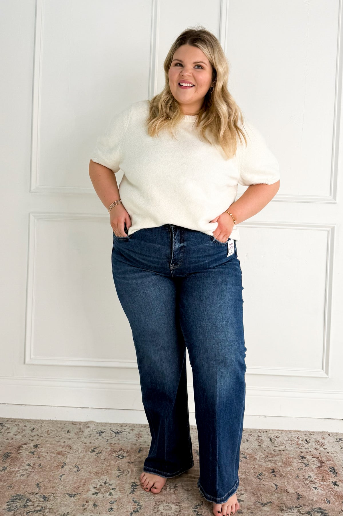 Risen High Rise Ankle Straight Curvy Jeans w/ Crease Line Detail