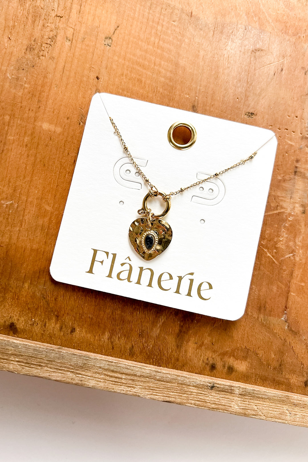 18K Non-Tarnish Stone Heart Necklace