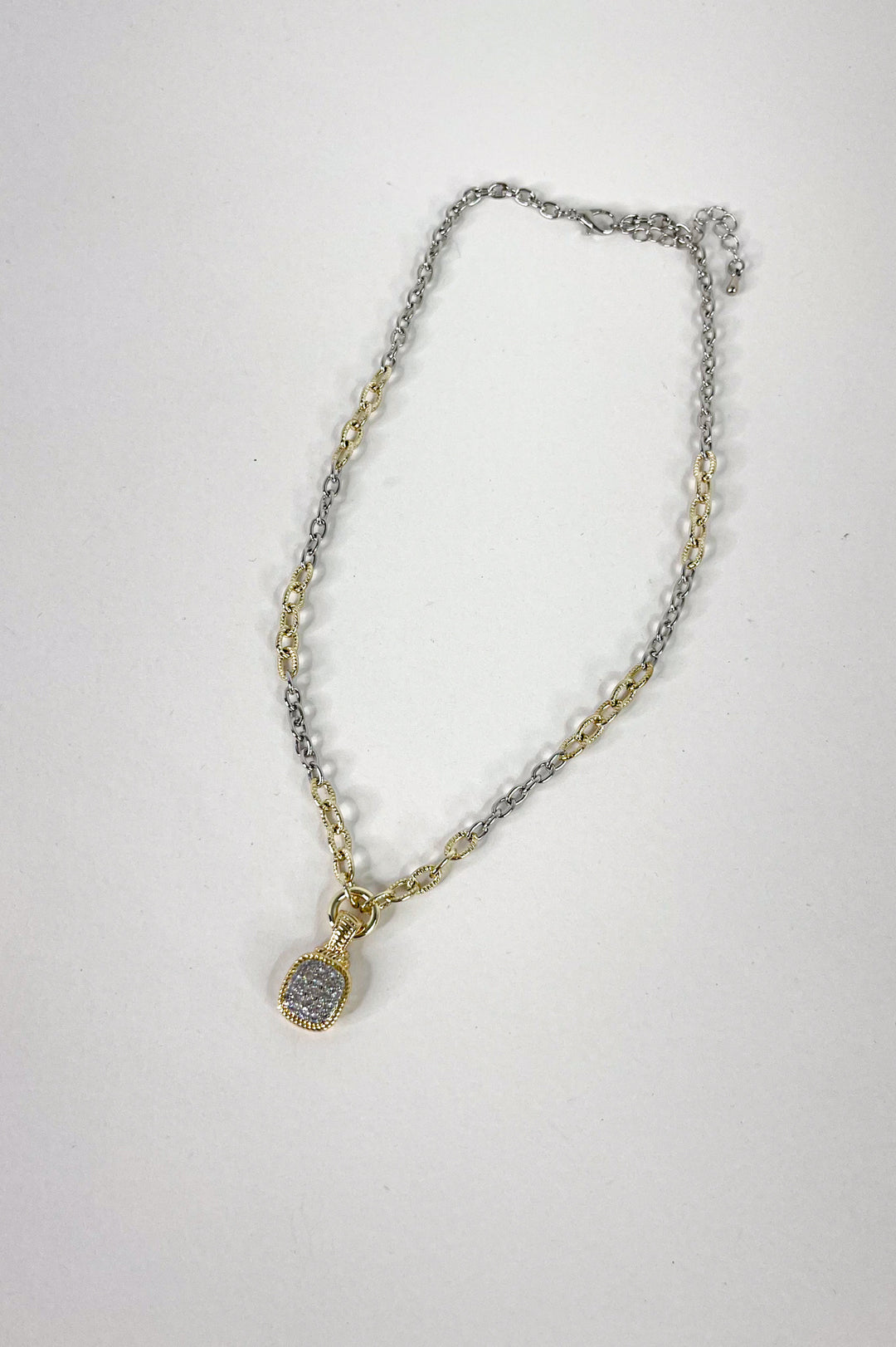 CZ Square Pendant Two Tone Necklace