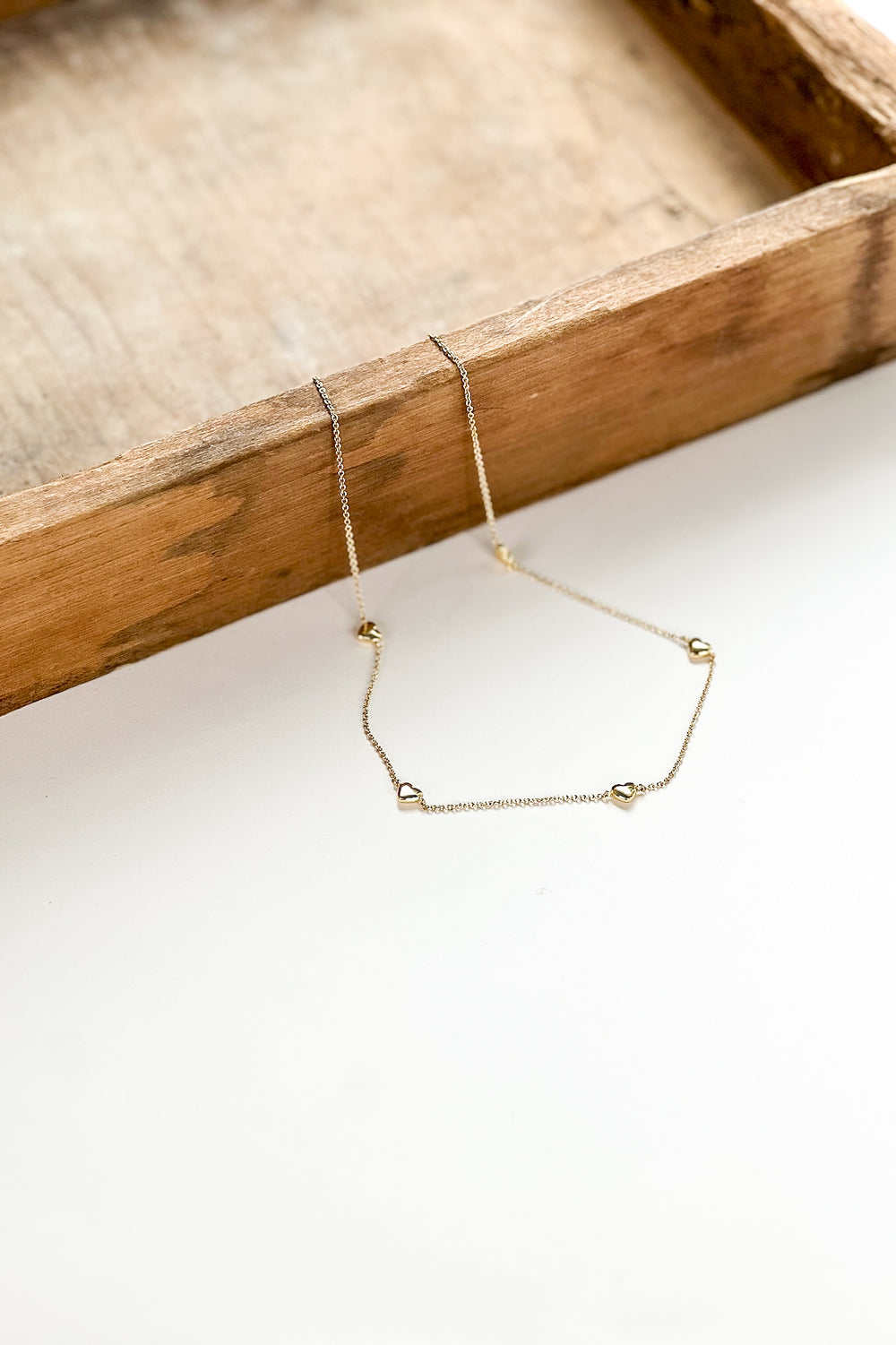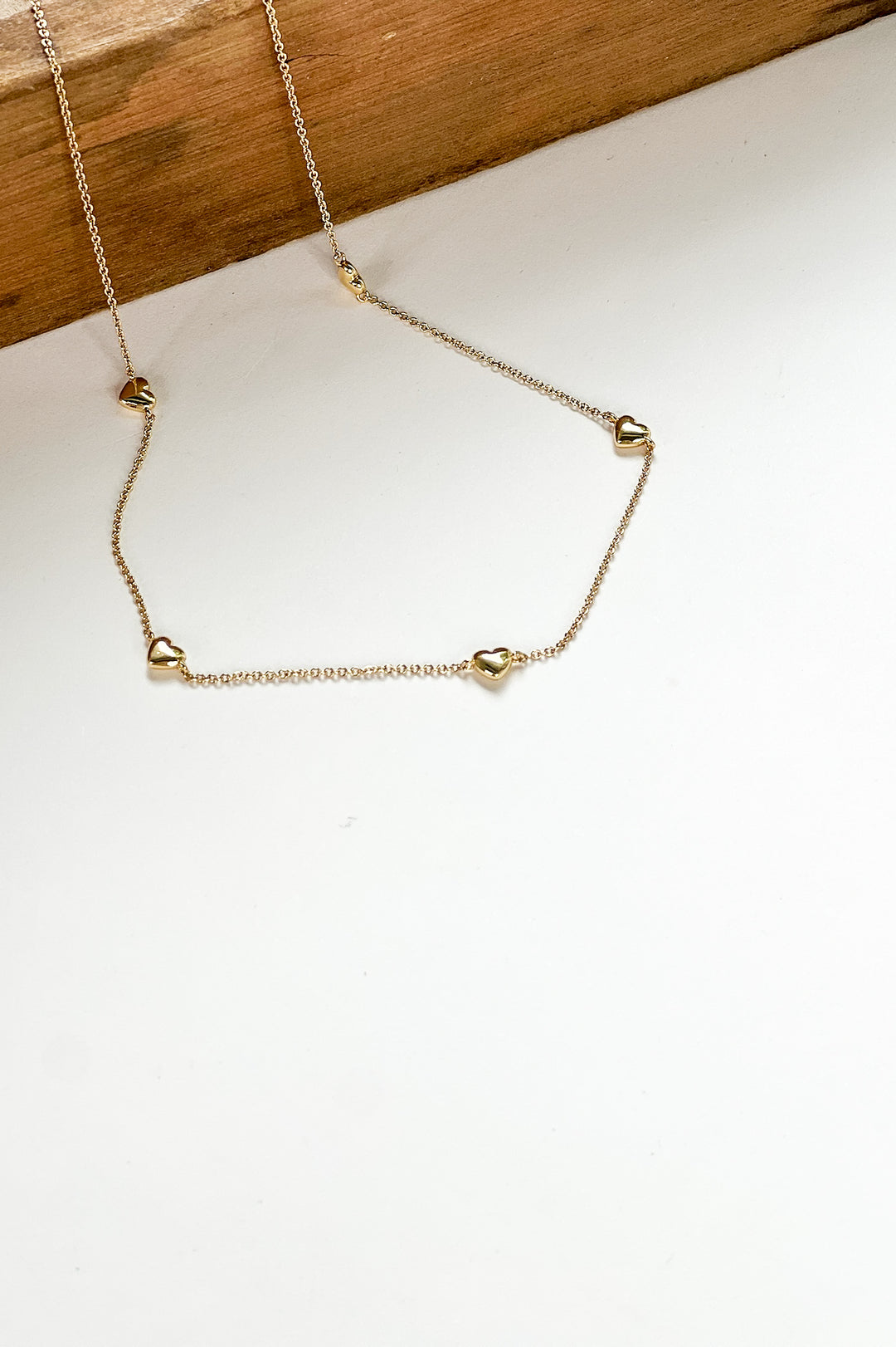 Gold Heart Charm Station Necklace