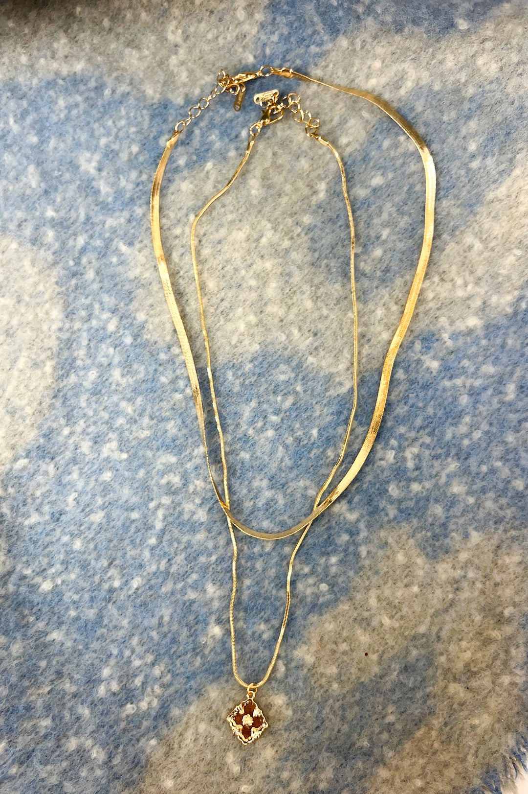 Clover Charm Double Layer 18K Gold Dip Necklace