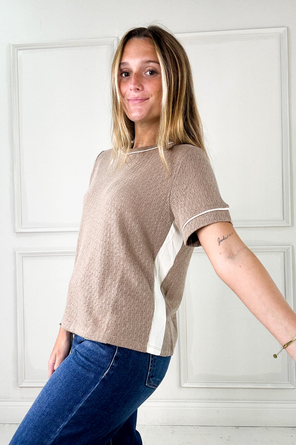 Long Sleeved Pointelle Knit Top