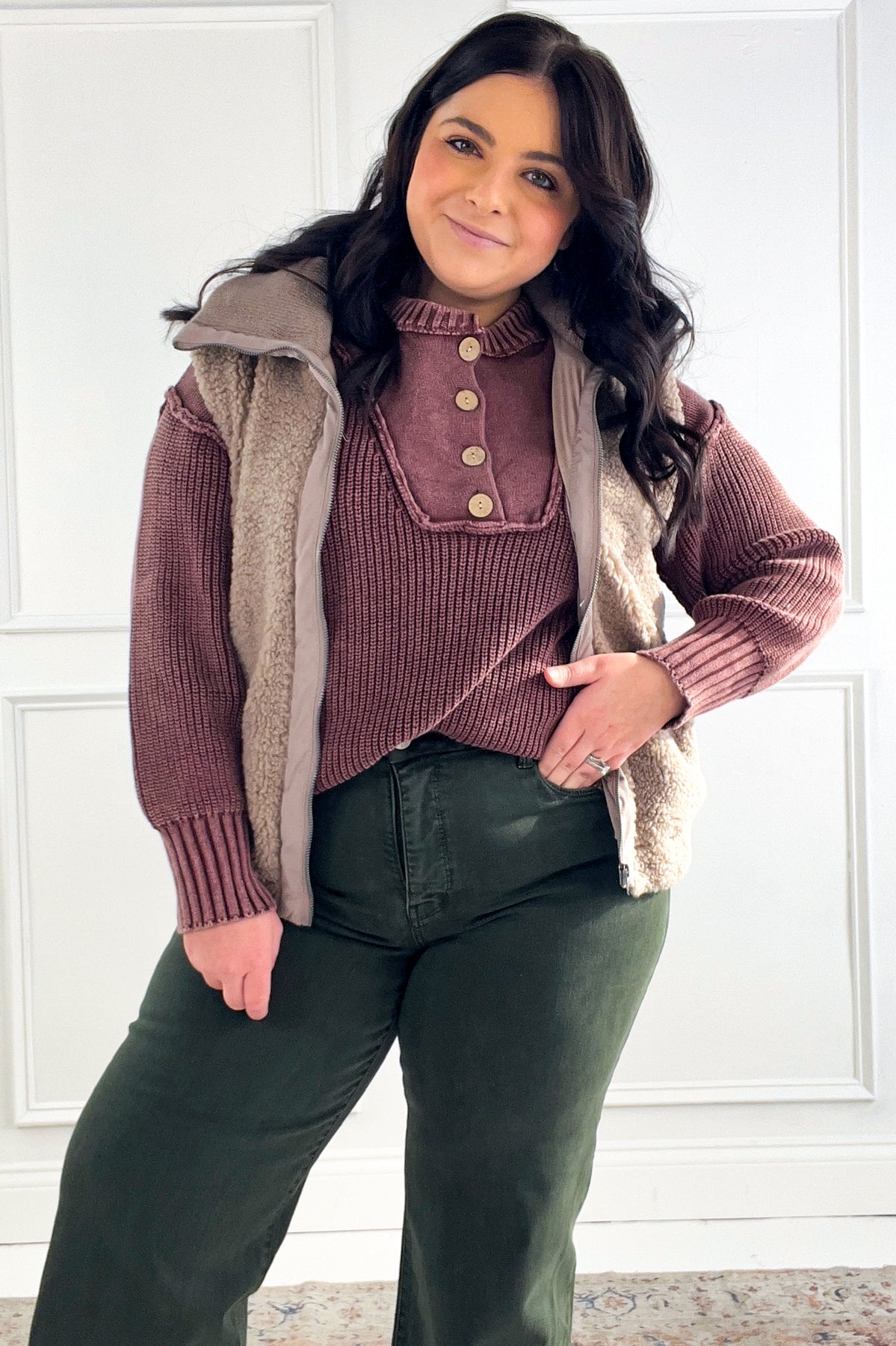 Button Front Henley Knit Sweater