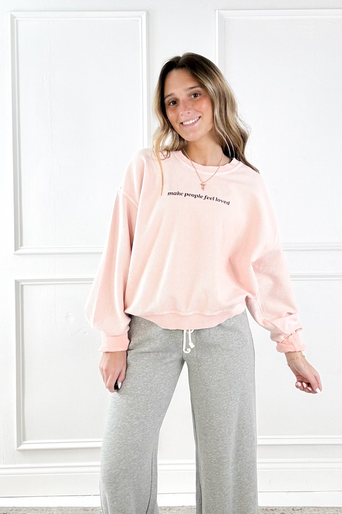 Make People Feel Loved Crop Thermal Vintage Pullover