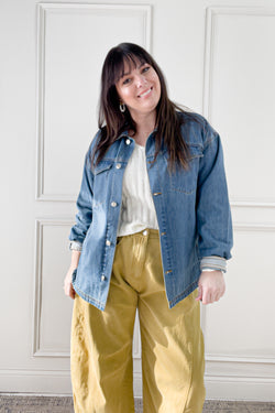 Model: Harlee Height: 5’1” Top: Medium or Large Bottoms: XL Denim Jeans: Risen Jeans 13 + Kut Size 12 Bust: 39” Waist: 33” Hips: 44.5" Inseam: 28"