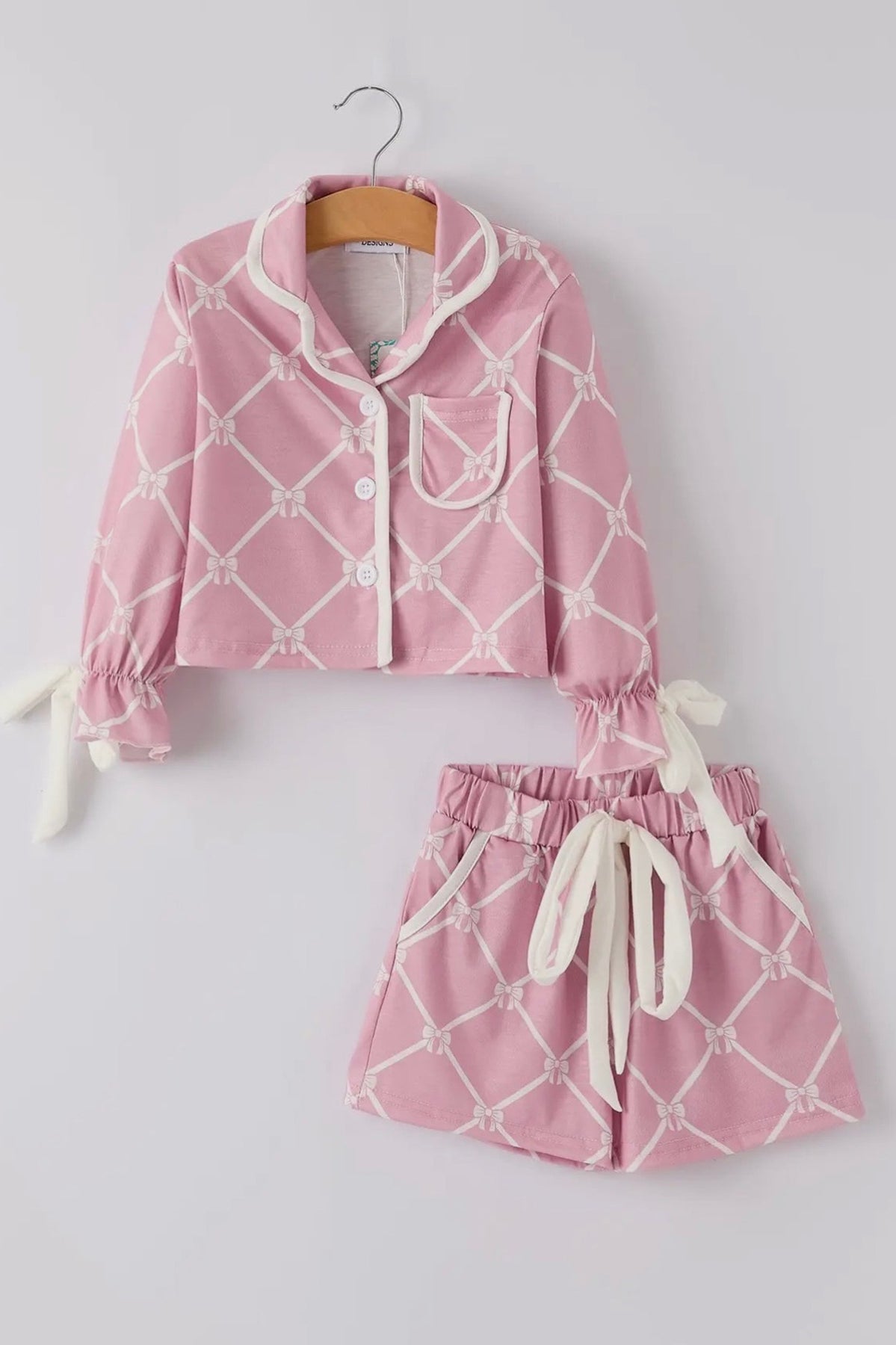 Bedtime just got extra adorable. This light pink checkered pajama set is as sweet as it is snuggly, featuring tiny bow details around the sleeves and the perfect relaxed fit for a comfy night’s sleep. Made for movie nights, sleepovers, and slow Saturday mornings—because cute dreams start with cute PJs