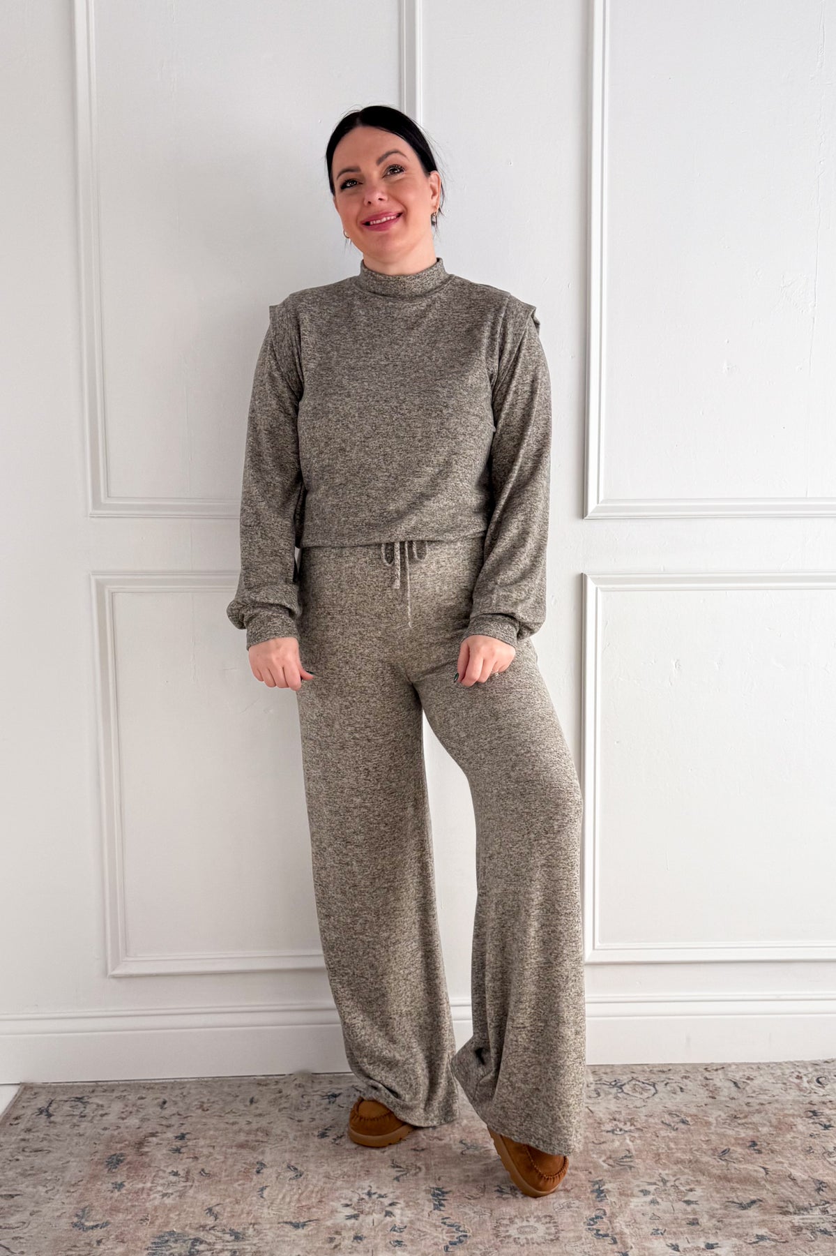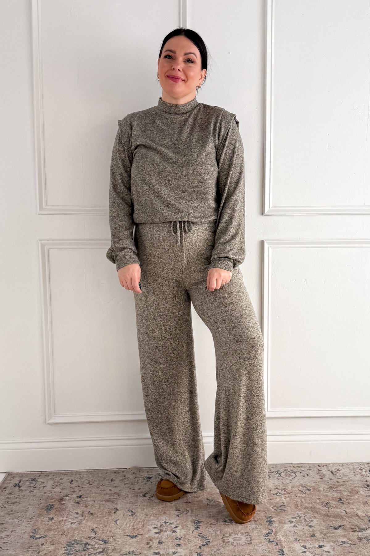 Long Sleeve Shoulder Band Brushed Rib Top