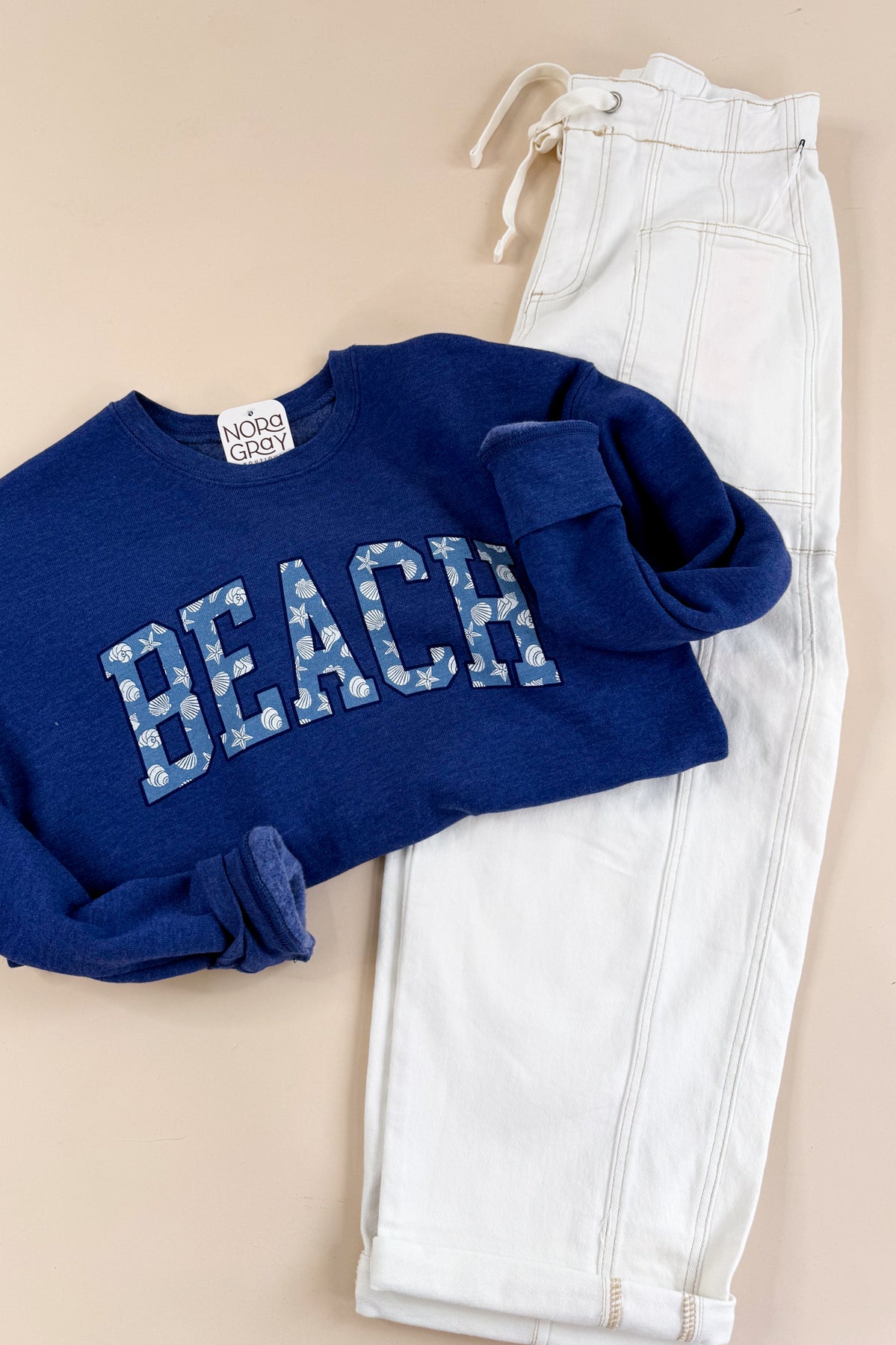 This relaxed pullover features bold BEACH lettering filled with a playful star pattern that pops against the deep blue base. Made for easy layering, it has that lived-in, throw-on feel that works just as well for breezy mornings as it does for late nights by the water. A fun, laid-back piece that instantly sets the tone for coastal days and casual weekends.