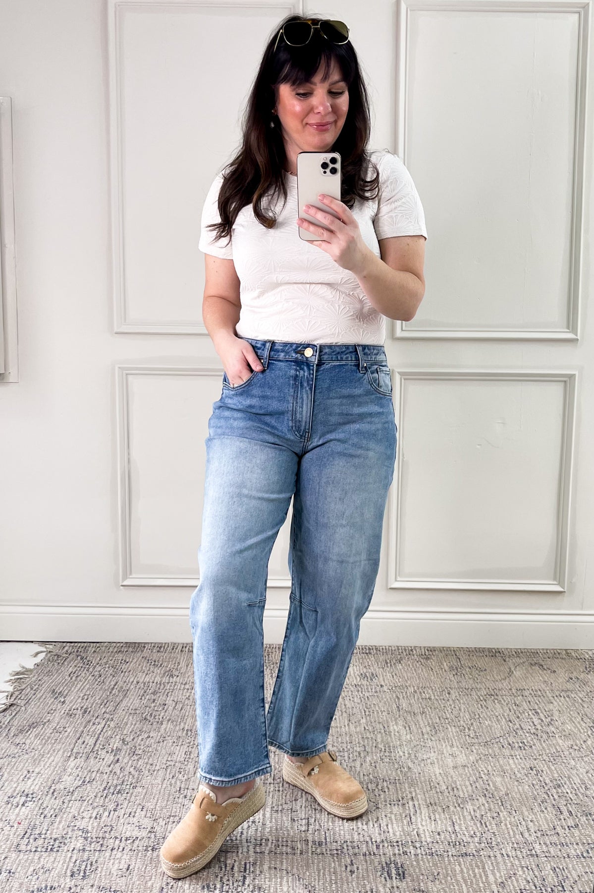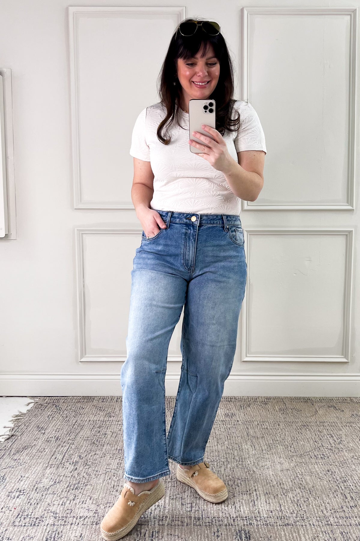 Relaxed yet stylish, these high-rise light wash barrel jeans bring an effortlessly cool vibe to your outfit. Perfect for pairing with anything from sneakers to ankle boots.