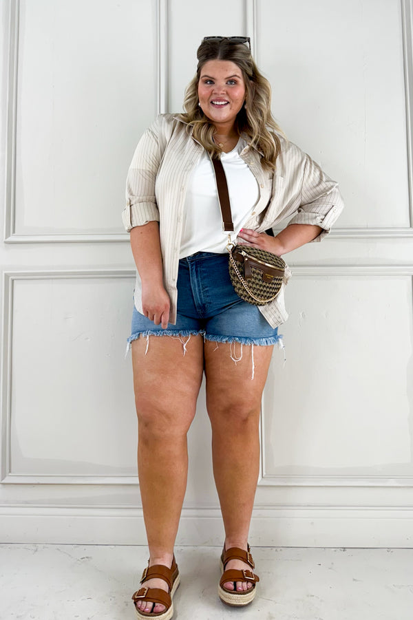 Mid Rise Raw Frayed Denim Shorts