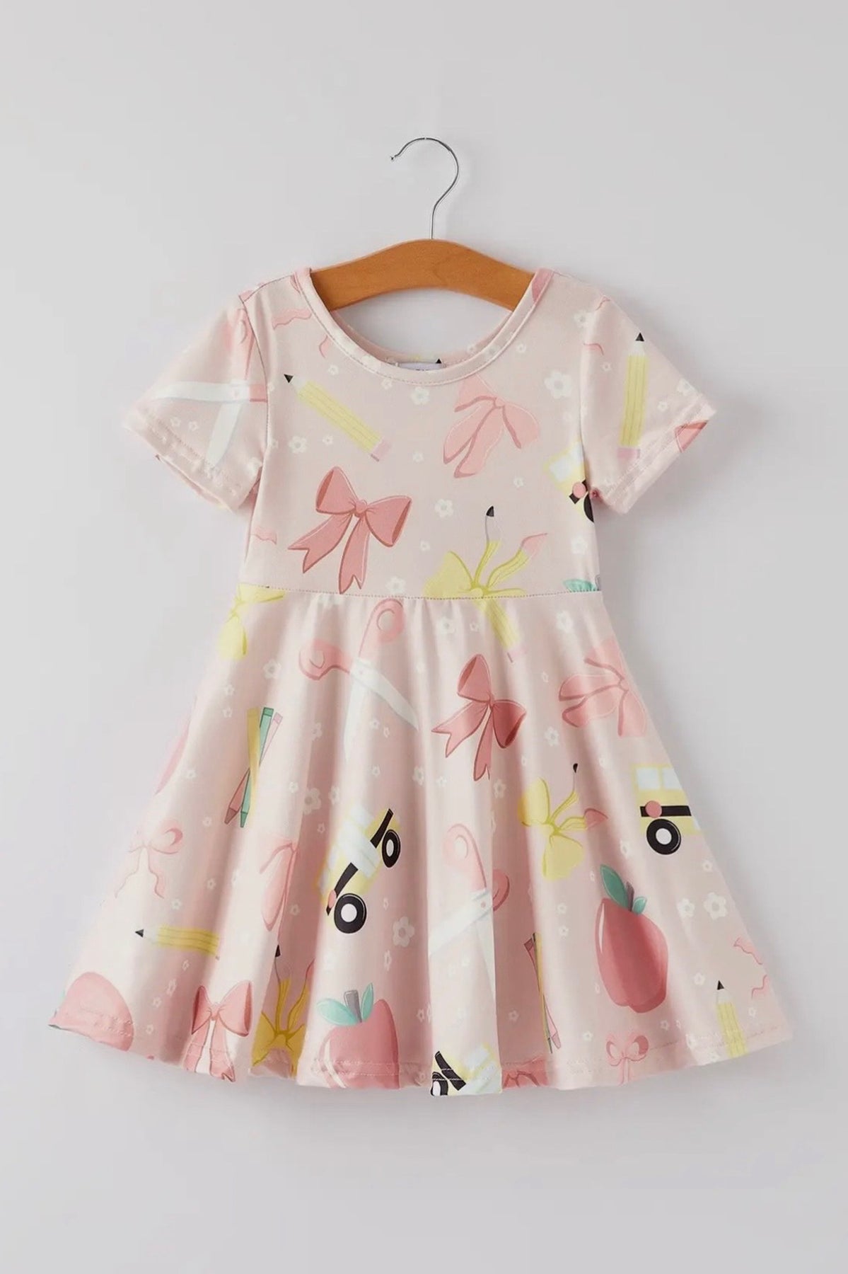 She’ll be ready to rule the school in this butter-soft dress covered in the cutest apples, pencils, and bows! The light pink color adds a touch of sweetness, while the comfy stretch and twirl-friendly fit make it perfect for learning and playing. A+ style for your little scholar! 🍎✏️🎀