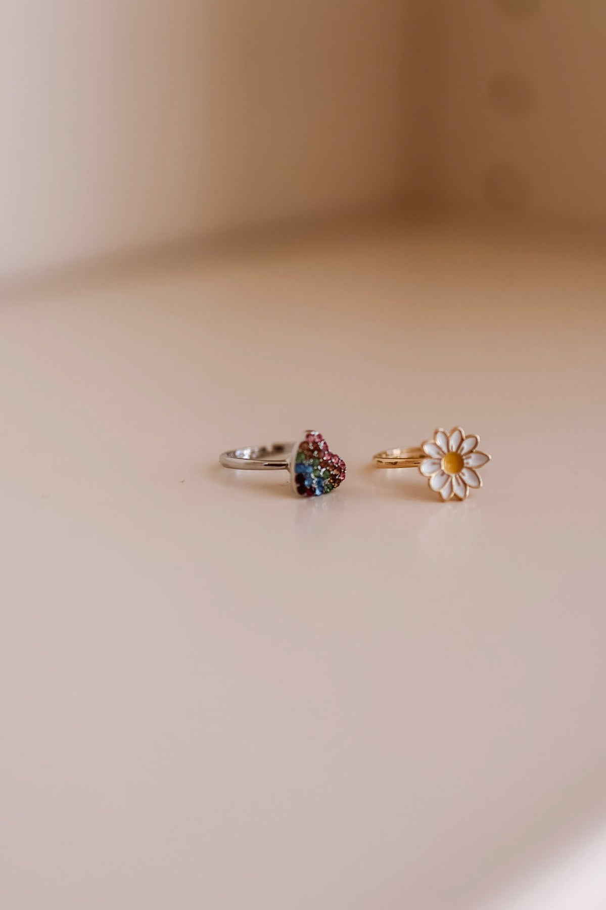 Fidget spinner rings for kids come in fun heart and daisy shapes, offering both a stylish accessory and a soothing sensory experience. Made from durable materials, these rings feature a spinning mechanism that kids can easily rotate, helping to relieve stress or keep hands busy. The cute heart and daisy designs add a playful touch, making them perfect for everyday wear and fun fidgeting.