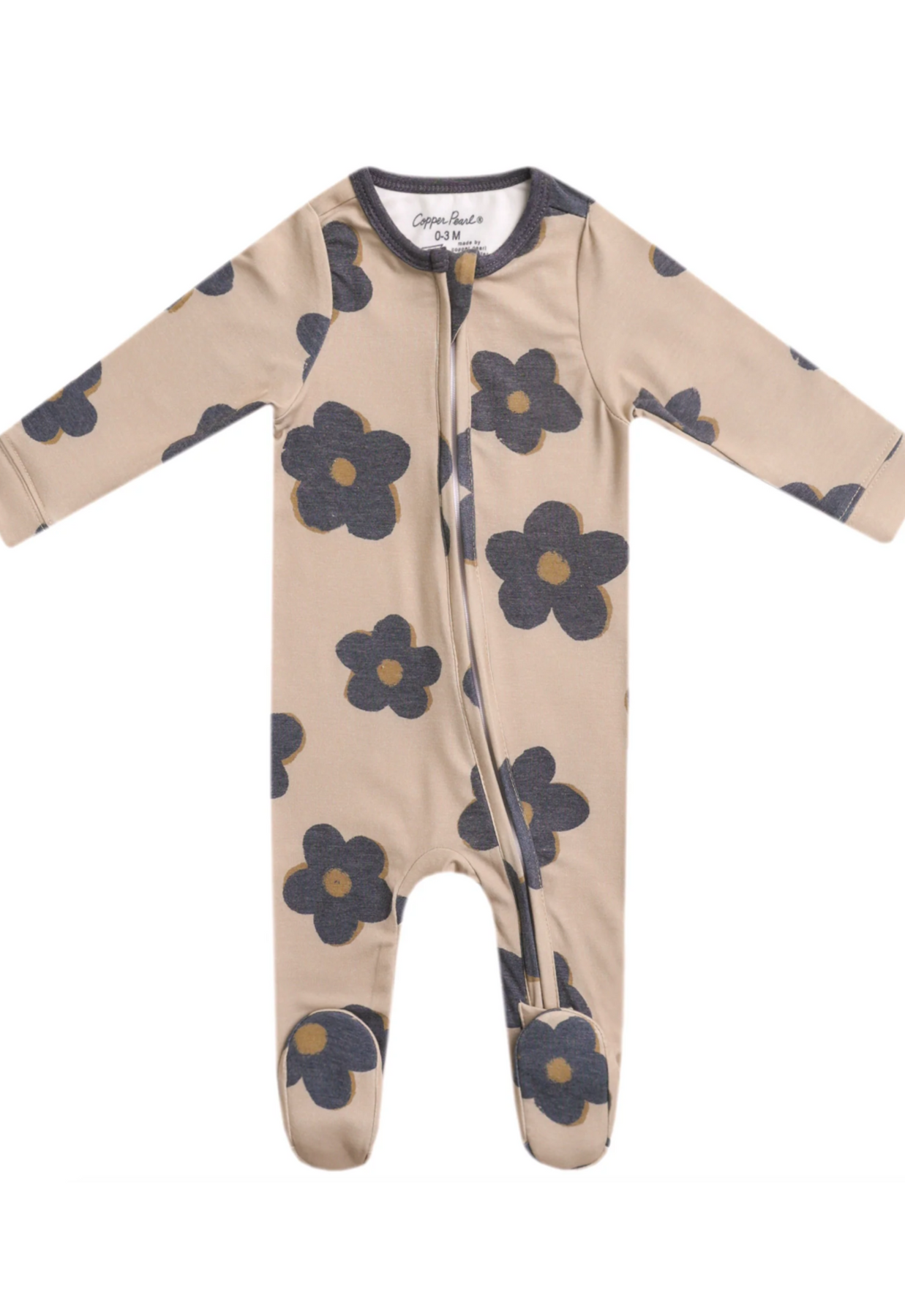 - We’ve dreamed up the perfect footie pajamas, featuring buttery soft fabric, a tag-free design, and a two-way zipper for easy changing. Pick your favorite Copper Pearl print for a stylish night’s sleep!