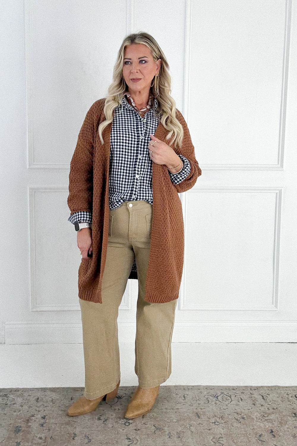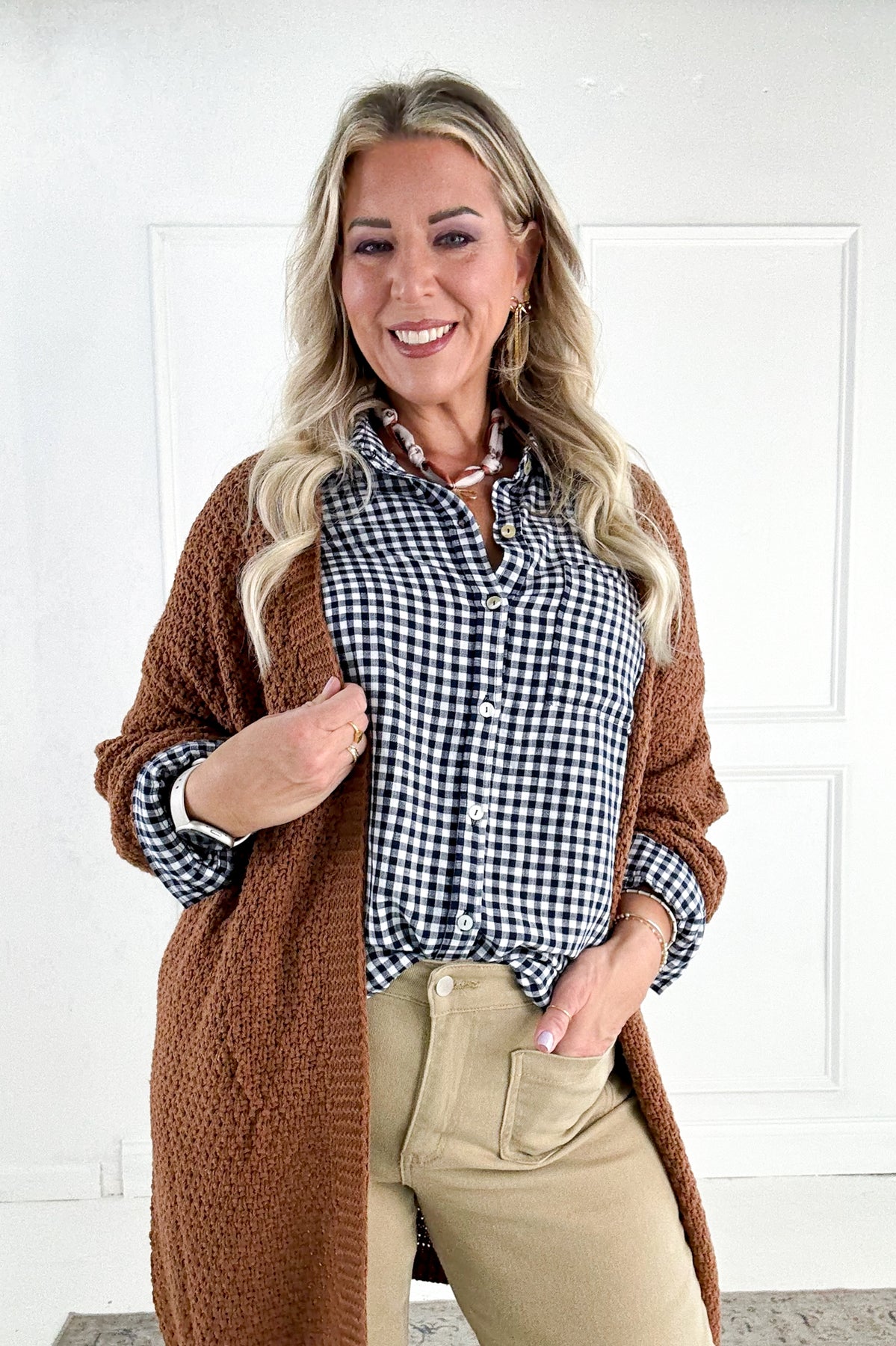 This lightweight gingham button-up is your laid-back layering hero. With a relaxed, oversized fit, drop shoulders, and front patch pockets, it’s comfy, cotton-blend perfection—finished with a classic collar for that easy, lived-in look.