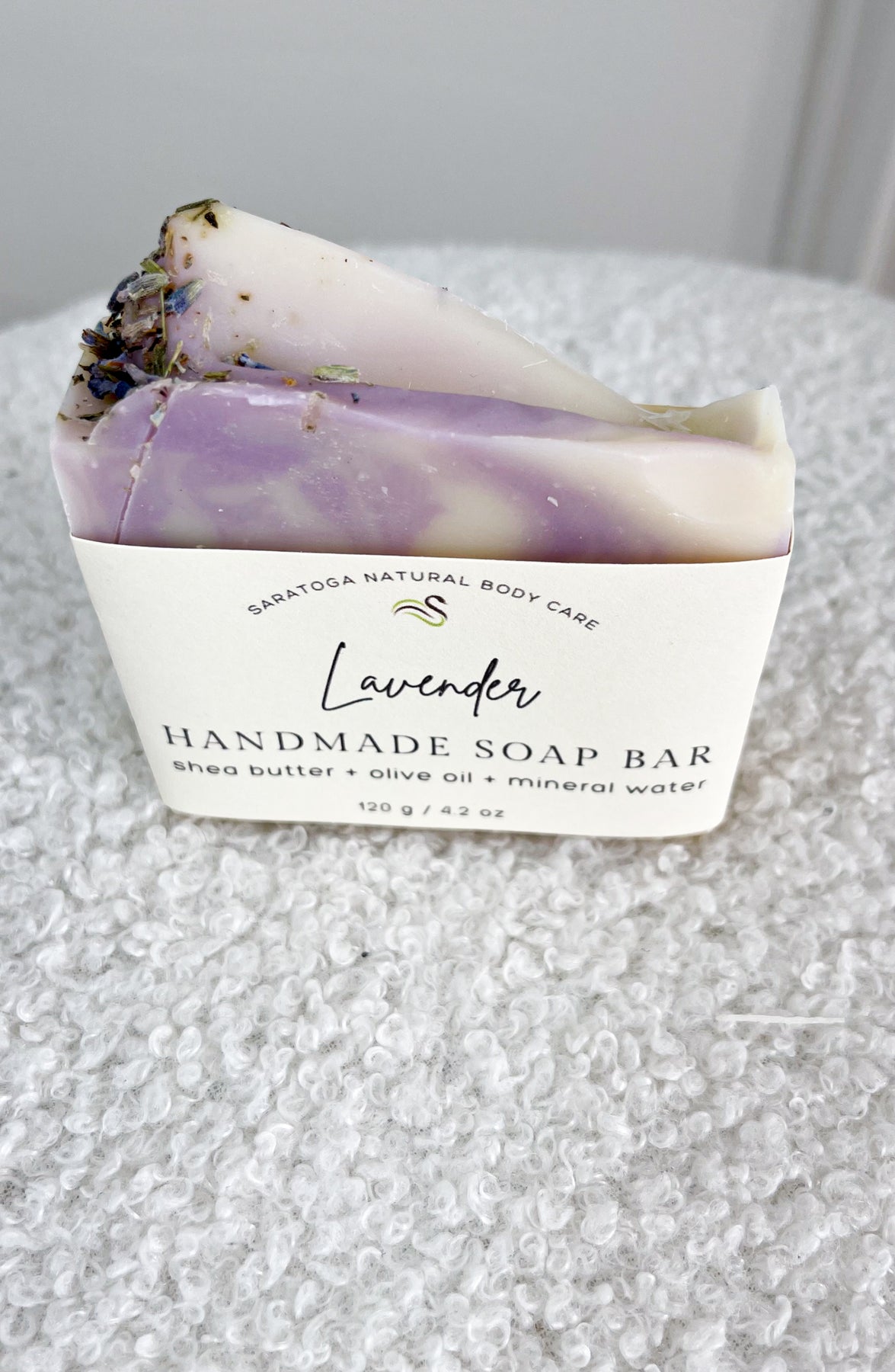 Handcrafted soap that features soothing, relaxing, and calming aroma of fresh lavender flowers.