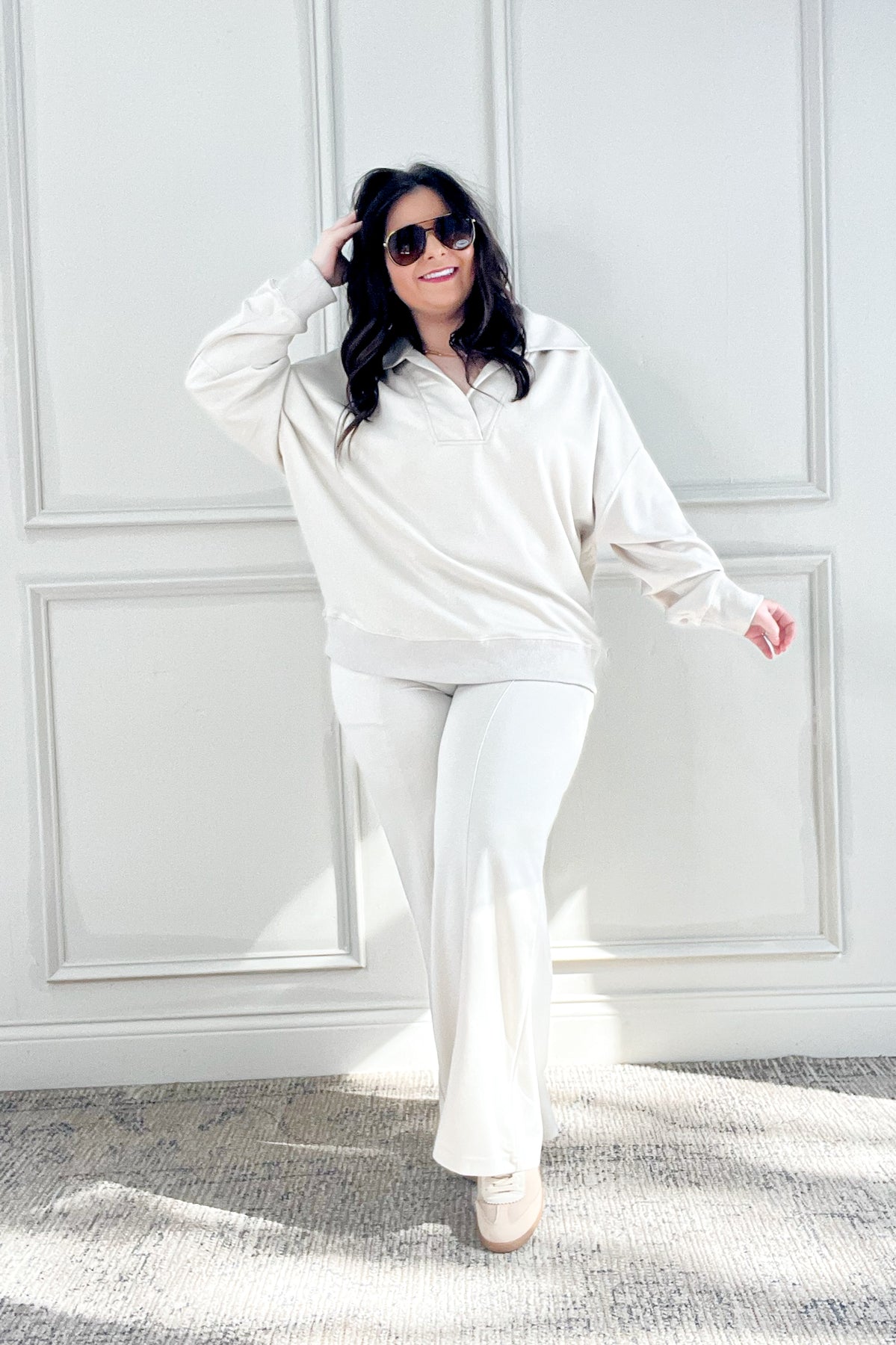Casual, soft, and effortless! This polo-style pullover is made from ultra-soft Luxeknit fabric and pairs perfectly with the matching joggers or sweatpants.