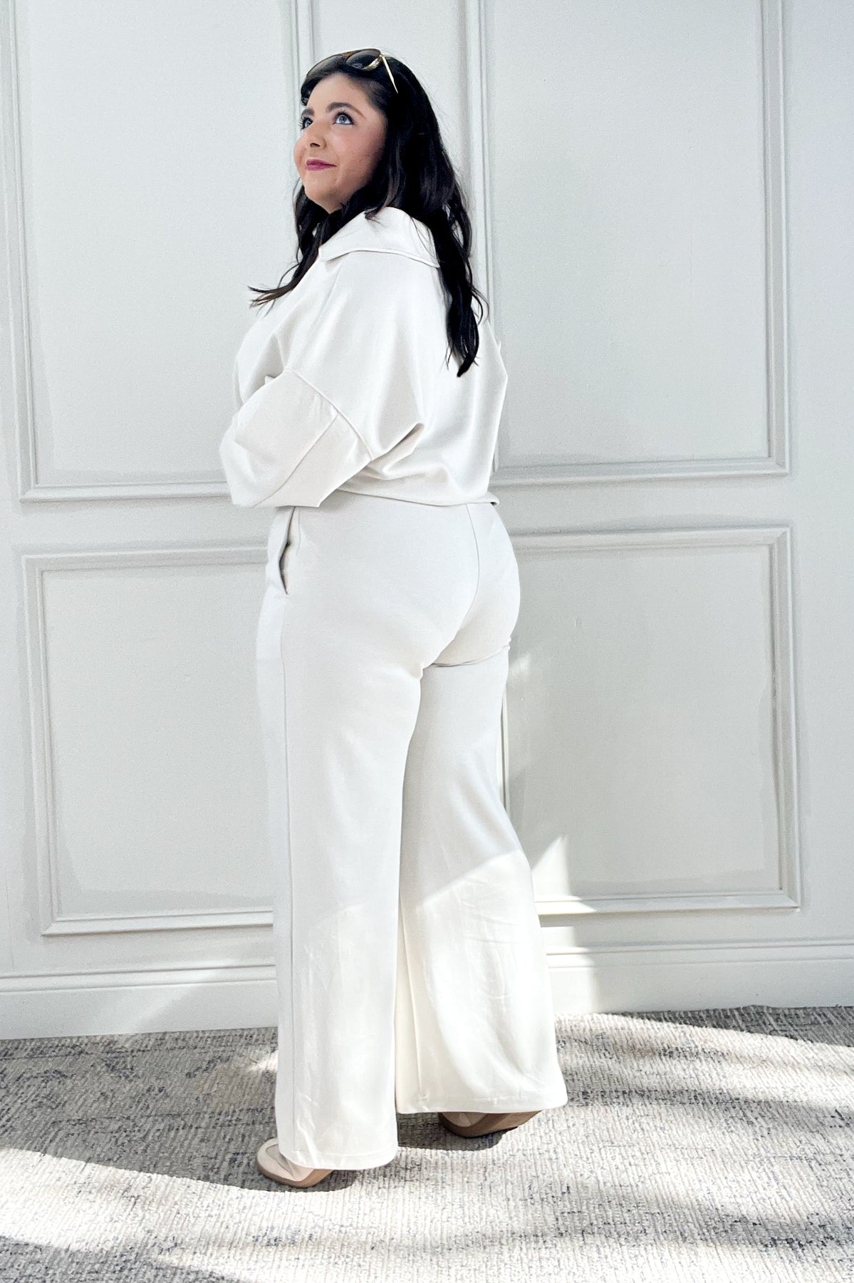 Lounging never looked so good! These high-waist, wide-leg sweatpants bring the ultimate comfort with a drawstring waist and handy side pockets.