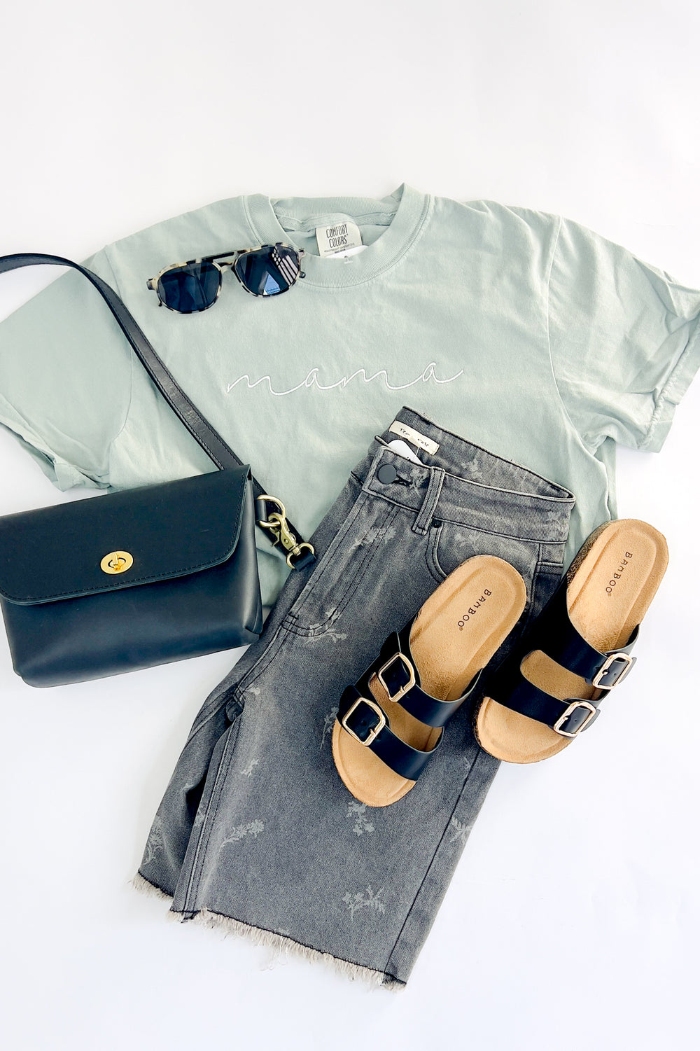 Cozy with a sweet personal touch, this vintage-wash Comfort Colors brand tee features elegant "Mama" script embroidery that keeps things classic, comfy, and full of heart.