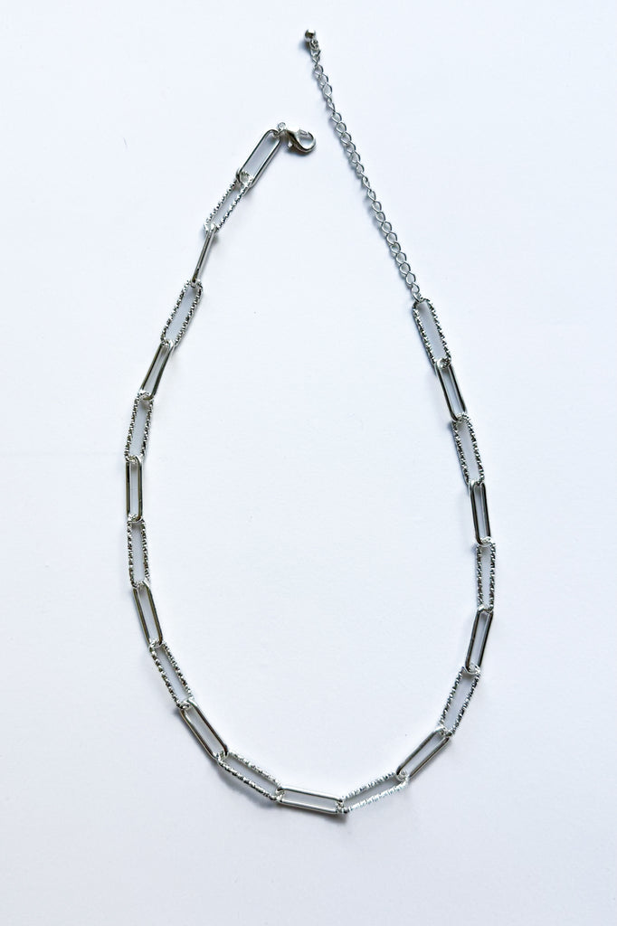 Mixed Texture Clip Chain Necklace in Silver