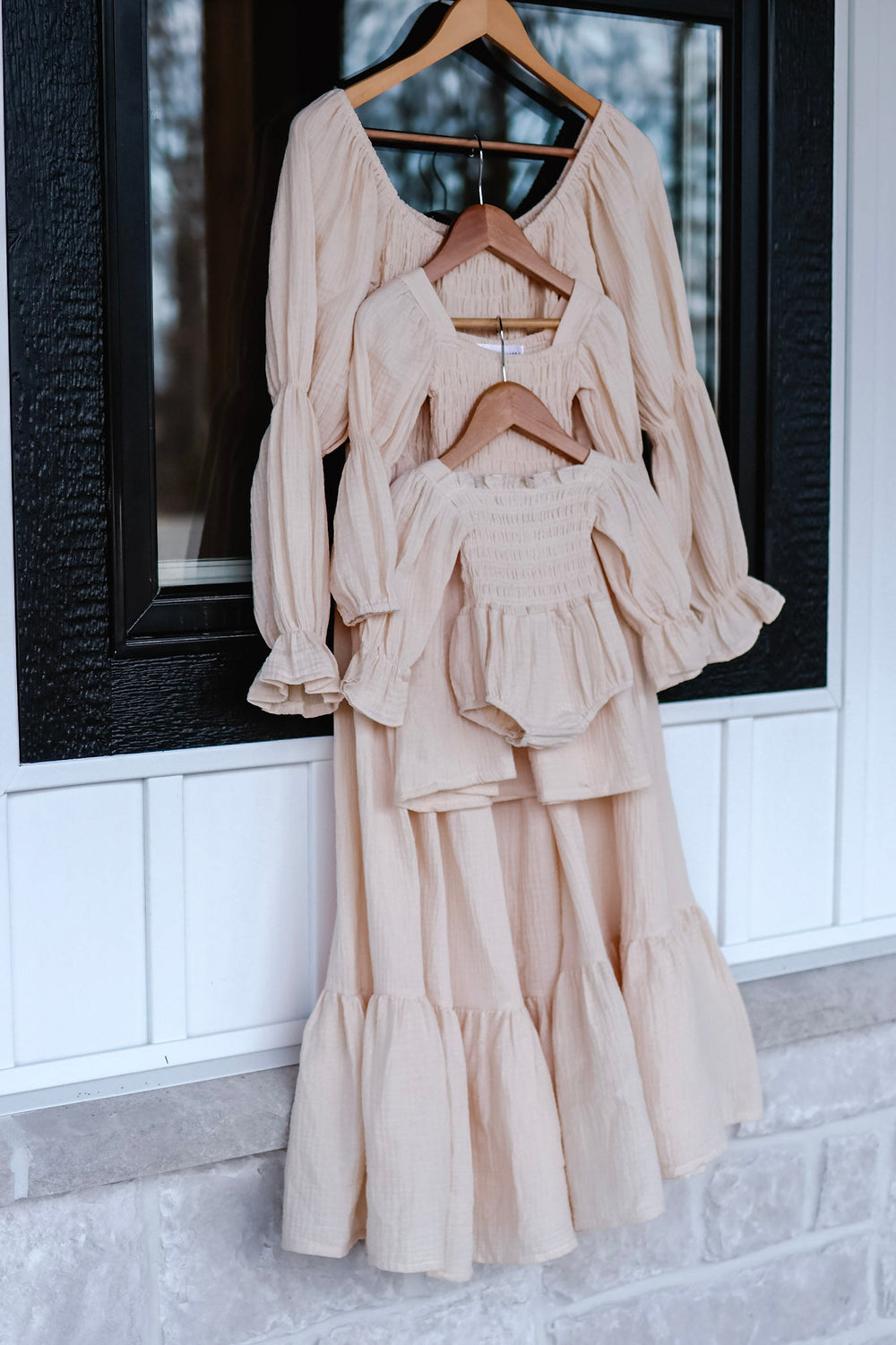 This Muslin, cotton puff sleeve “Mommy and Me” dress for moms features a lightweight, breathable fabric perfect for warm weather. The dress includes charming puff sleeves and a relaxed, flowy design for comfort and ease of movement. Its stylish and flattering cut is perfect for both casual outings or special occasions.